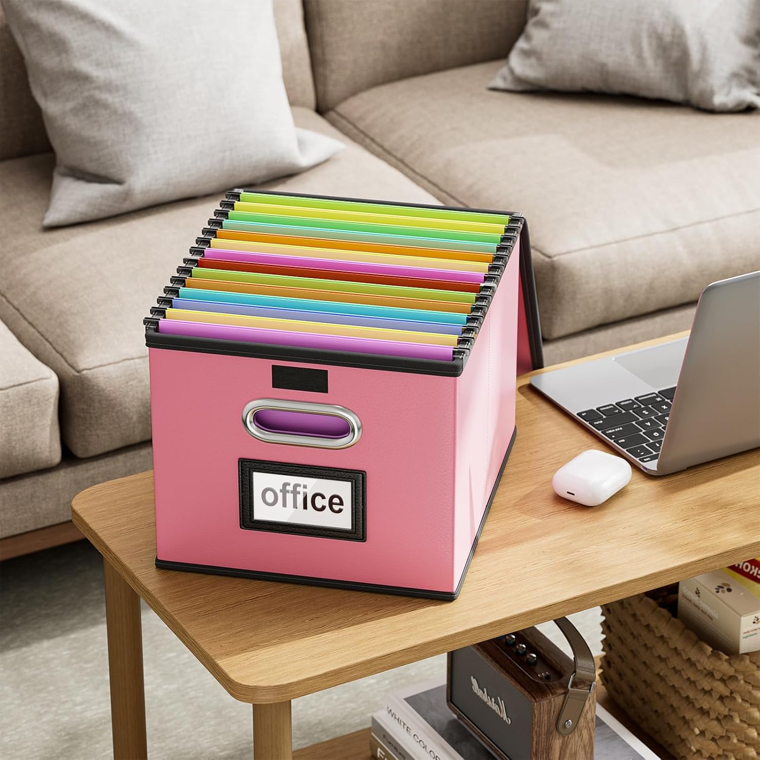 - Unique Functional Design - This file boxes both sides are equipped with practical PVP slide rails, which can not only prevent the two sides of the file storage box from loosening, but also facilitate the sliding of the file folder, which is very suitable for hanging file folders. The metal handles on both sides allow us to easily move the storage box, and the label slot on one side facilitates classification. Functional features and a beautiful design create the best filing box organizer.