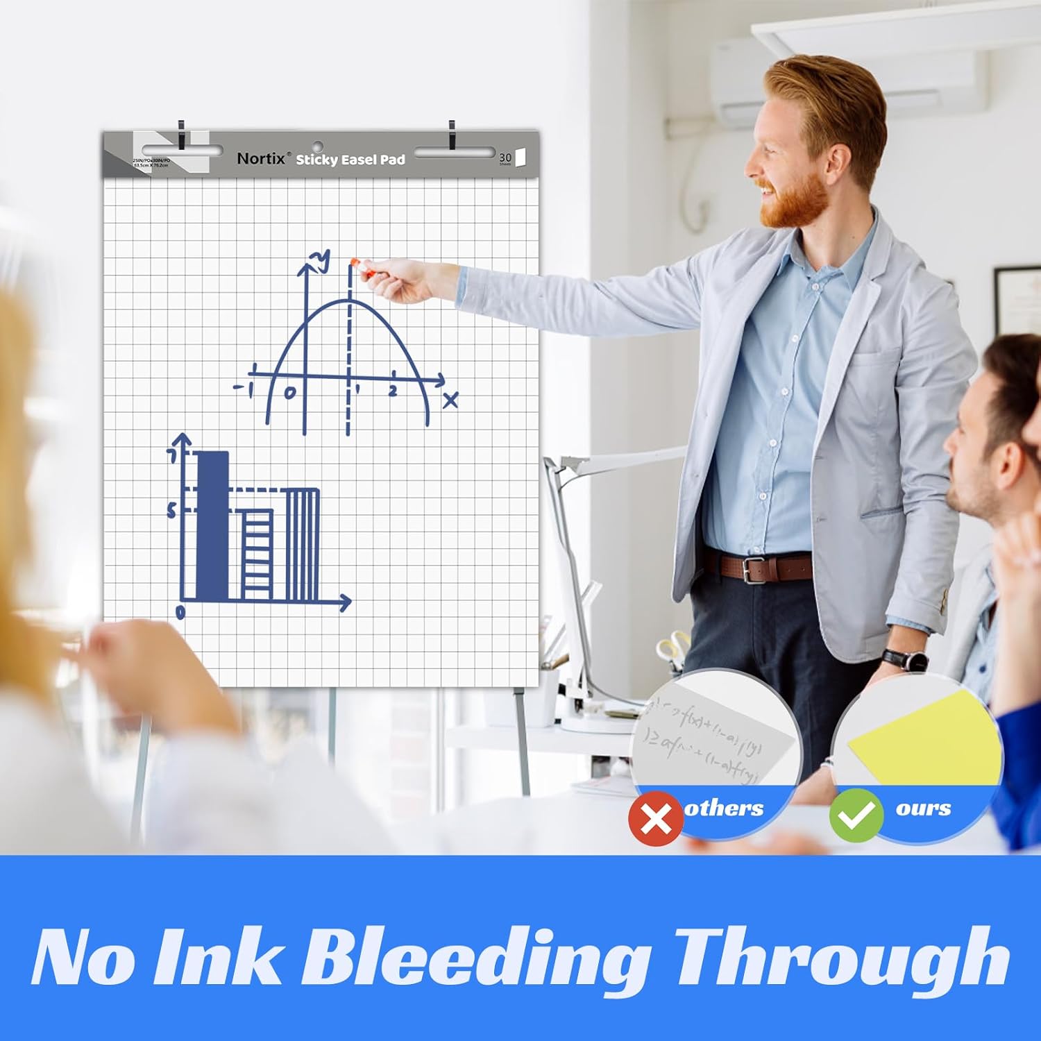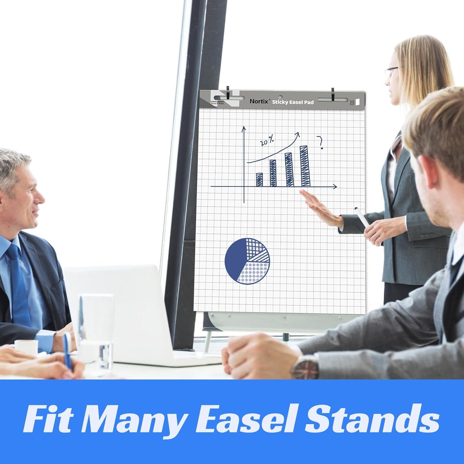 Nortix Sticky Easel Pad, 25x30 Inches Large Self Stick Grid Flip Chart Paper, Upgraded Versatile Sticky Easel Pad with Dry Erase Surface for Meeting/Training/Doodling, 30 Sheets/Pads, 6 Pads