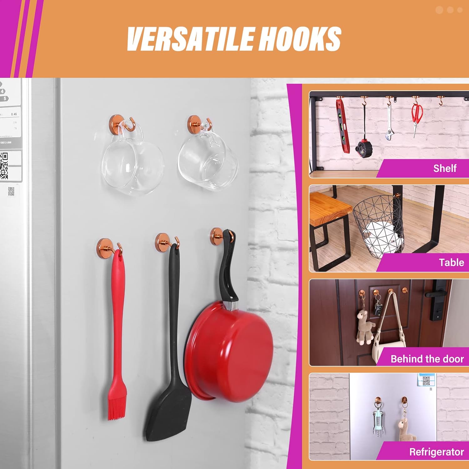 - ✔ HIGH-LEVEL PLATING- We offer 4 layers of coating on the magnet hook metal base, metal hook, and magnet. It provides this magnetic hanger with a shiny, rust-free, and mirror-like finish. Coated magnetic hook particularly exhibits an excellent anti-corrosive properties and scratch resistance. Maintenance-free, no rust!