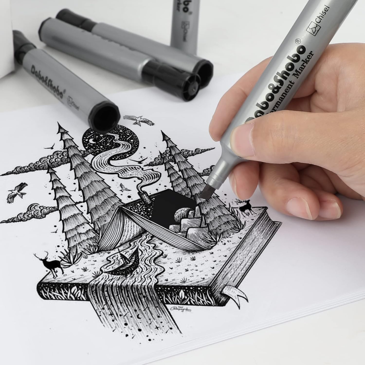 Dabo&Shobo 72 Pack Permanent Markers, Chisel Point, Quick Drying Ink, Black Permanent Markers, Works on Plastic,Wood,Stone,Metal and Glass for Doodling, Marking…