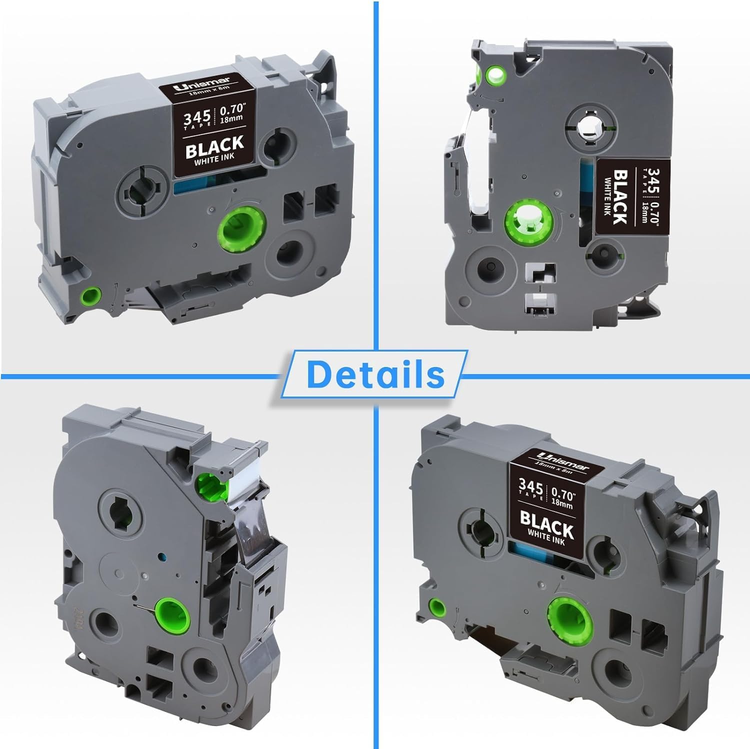 Unismar TZe-345 Compatible for Brother Ptouch 18mm 0.7 Laminated White on Black Label Tape TZ345 TZ Tape Work for PT-D400AD PT-D410 PT-D600 PT-D400 PT-2700 PT-1880 Label Maker, 3/4'' x 26.2', 4-Pack