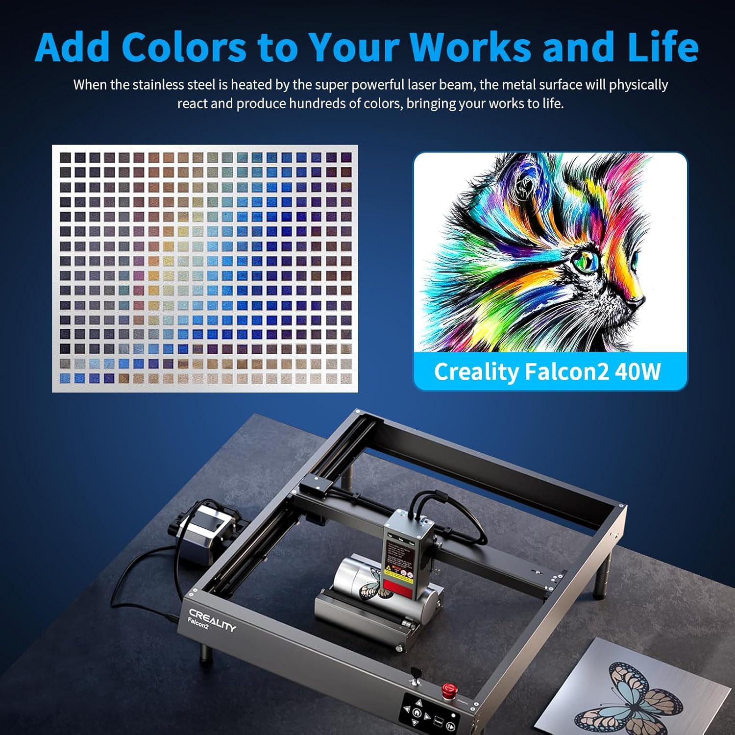 Creality Laser Engraver, Falcon2 40W Output Laser Cutter with Air Assist, 25000mm/min Speed & High Accuracy Laser Engraving Machine for Wood and Metal, Acrylic, Leather