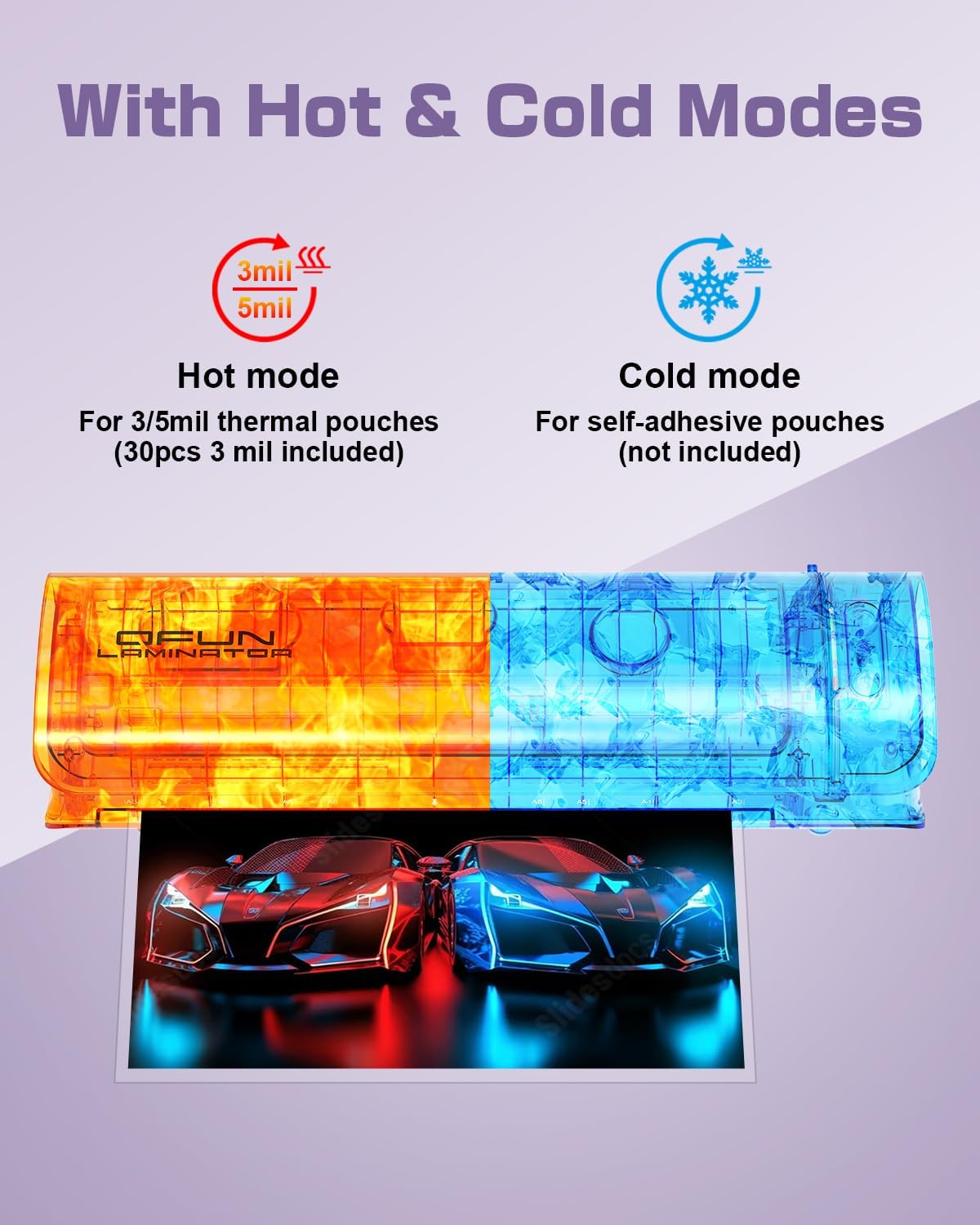 - Dual Mode to Meet Different Needs: Different from the plastificadora laminadora with only one mode, this laminator machine with laminating sheets can not only process 3/5mil of double layer pouch in thermal mode, laminate teaching materials, party signs, office documents, you can also use cold self-adhesive transparency films (not included) for heat-sensitive items such as specimens, receipts, old photos. Truly realize the dual use of one machine, reduce costs