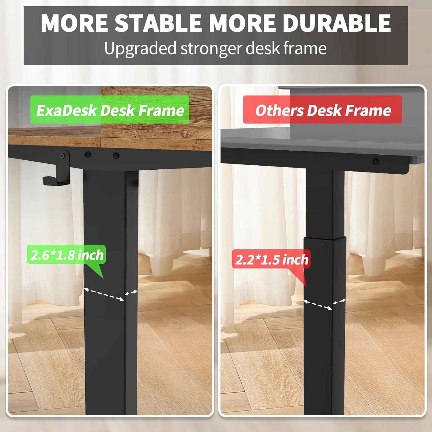 - ✨Customize Cozy Sit Stand Desk Height: ExaDesk electric standing desk adjustable height range is 27.5"~46.5" also suitable for tall people. 3 Preset buttons, M Button, and Up and down Buttons on the control panel, help you preset cozy sitting and standing desk heights easily. ExaDesk electric standing desk, One-click smoothly can switch to your favorite sit stand up desk height.