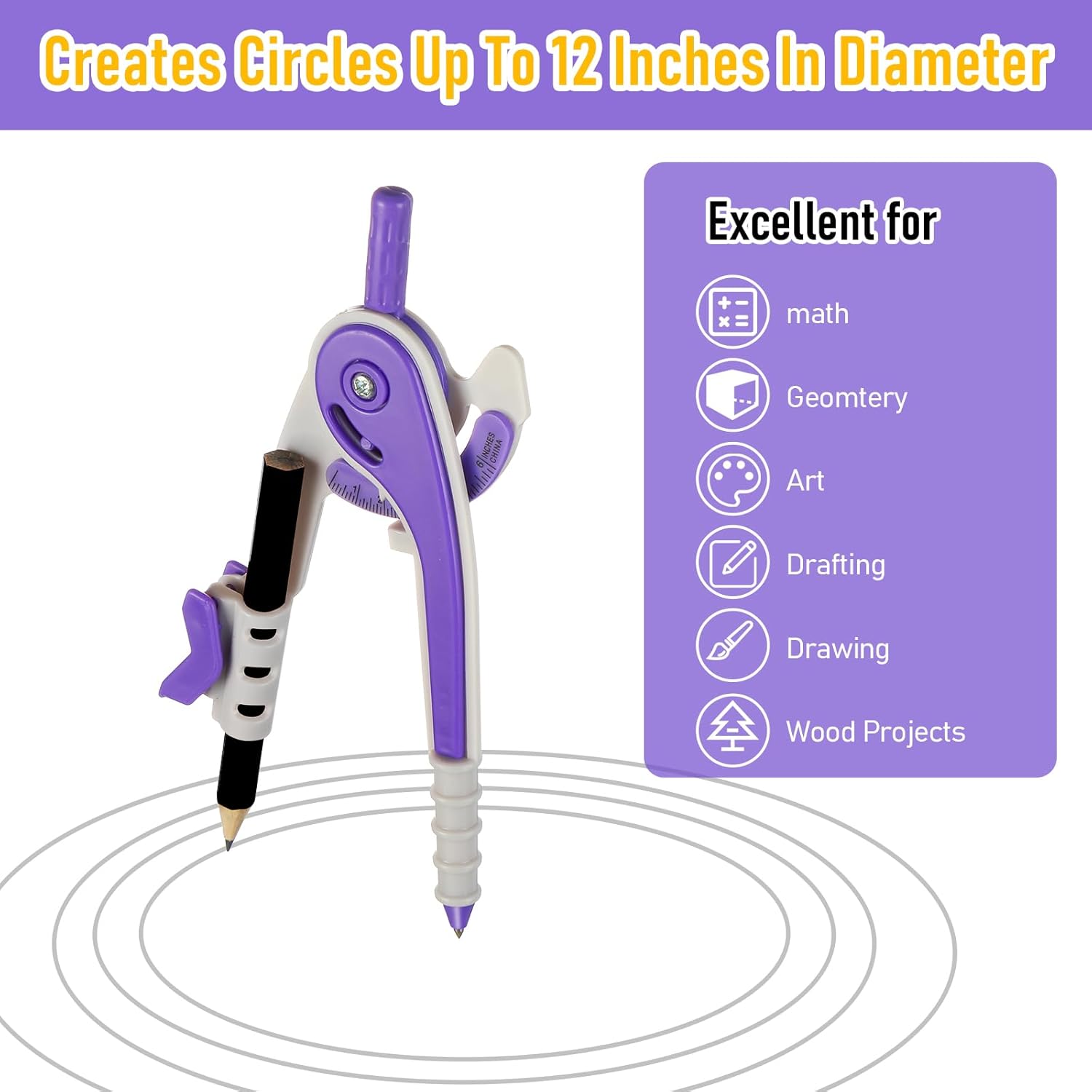 - 2 Piece math set: compass and protractor are great for drawing circle and measuring angle, good for students, teachers, engineers, designers, artists, etc.