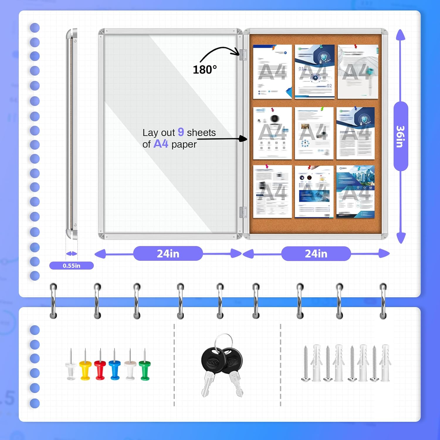 - SECURE AND PROTECTED NOTICE BOARD: Enclosed bulletin board keep important information safe from the elements, theft, or tampering with lockable acrylic doors and key mechanisms.Save valuable wall space and maintain a clean and organized appearance in offices, schools, or community centers.
