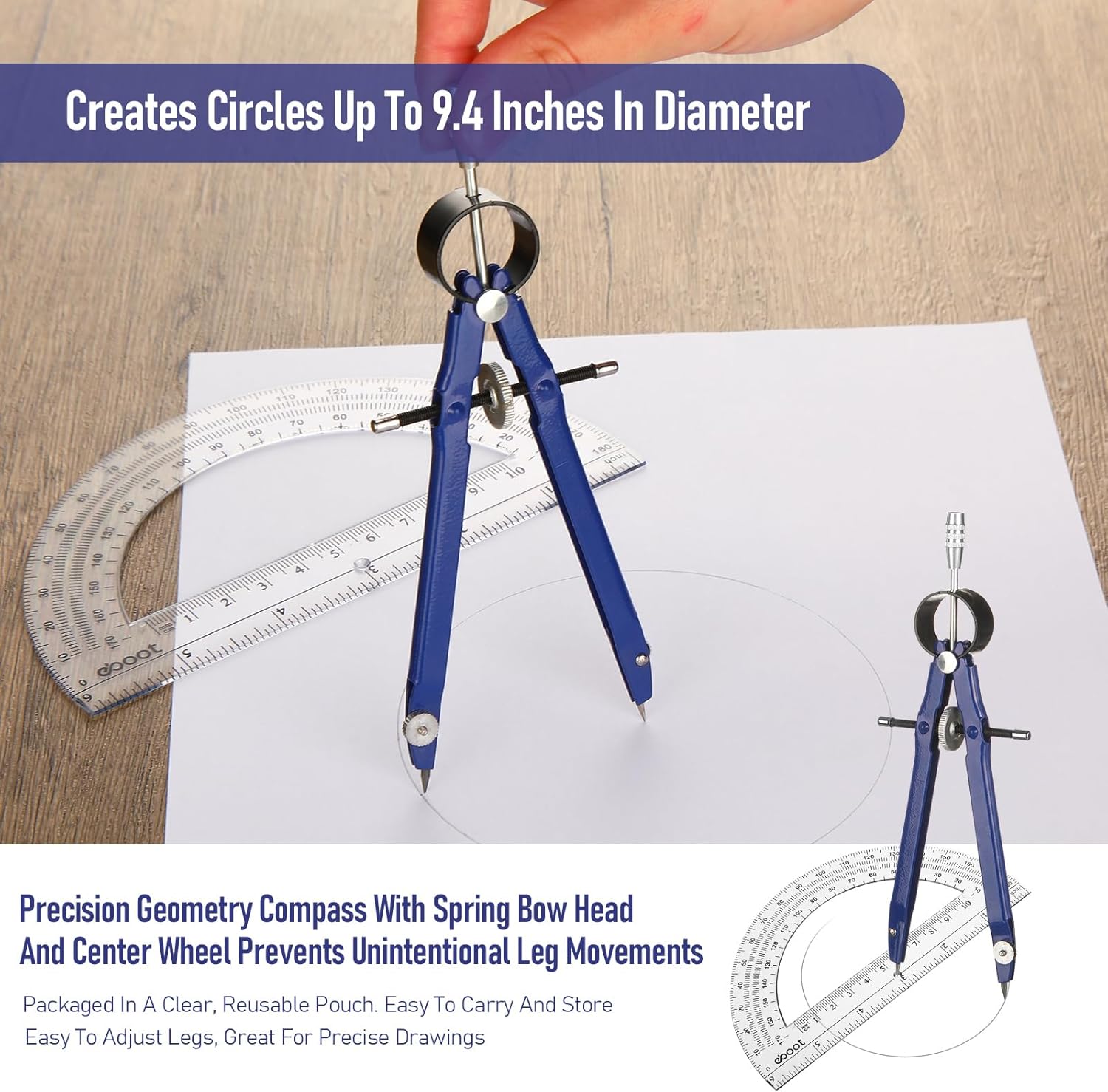 - 2 Piece math set: compass and protractor are great for drawing circle and measuring angle, good for students, teachers, engineers, designers, artists, etc.