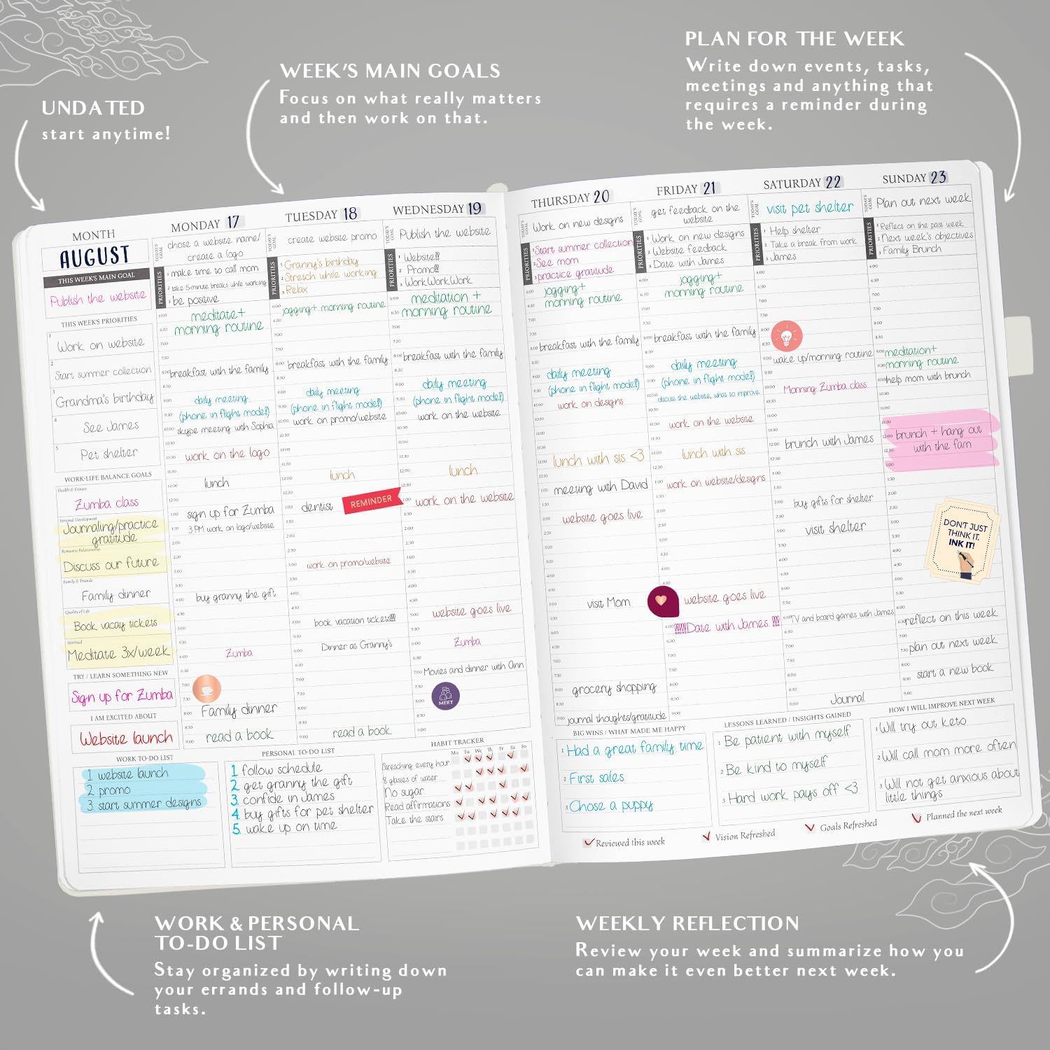- THE ULTIMATE UNDATED, LARGE-FORMAT PLANNER – This large-format, undated planner combines effective planning tools and goal-setting frameworks to help you stay focused and productive throughout the year.