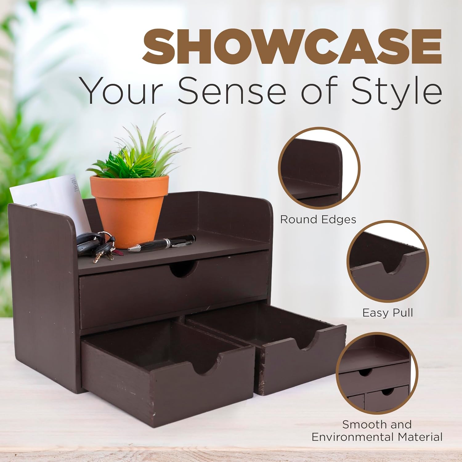 - ✅ MULTIFUNCTIONAL DRAWERS - This classy wooden desk organizer is not just for the office. It can also bring style to your bedroom, bathroom, or kitchen. Use it to organize spices, toiletries, and makeup!