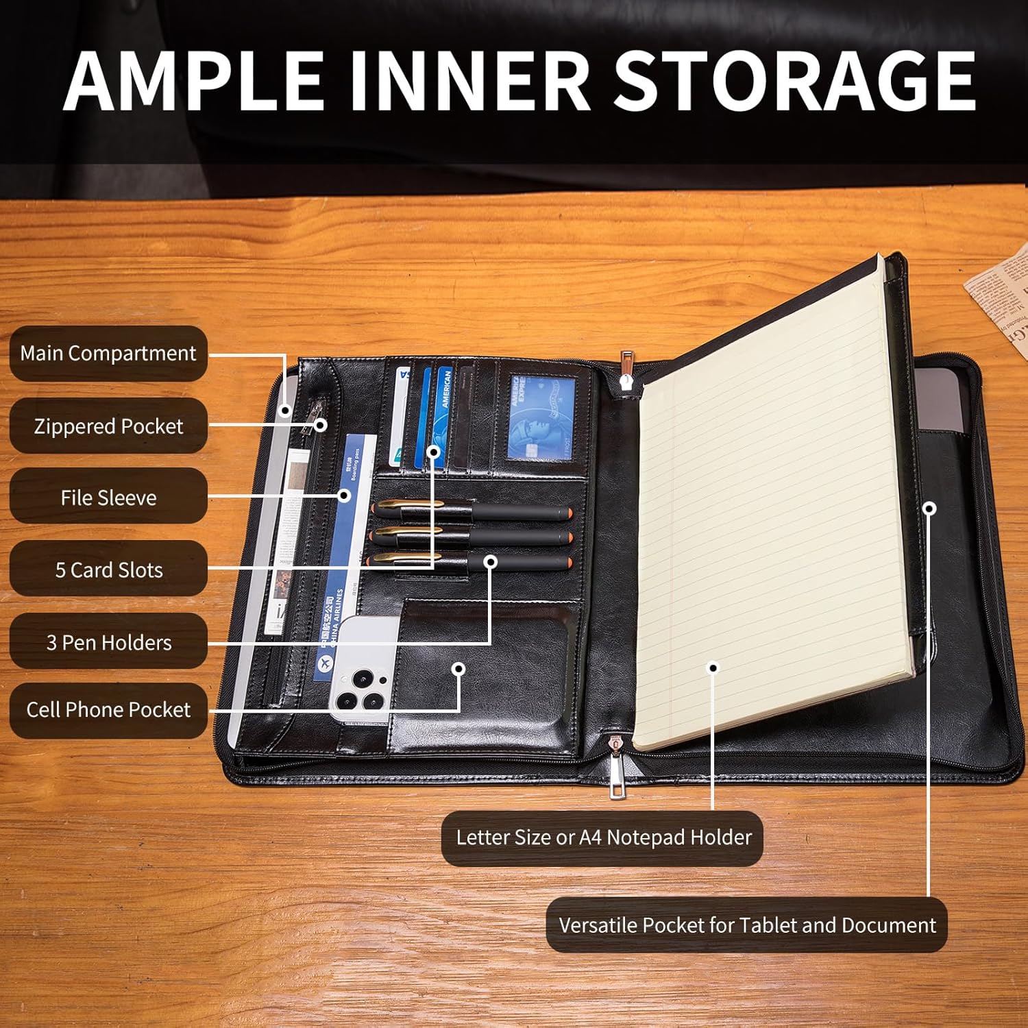 - Hidden Handle and Exterior Pocket: Effortlessly carry the portfolio with one hand, eliminating the need for additional bags or straps. Particularly beneficial for professionals on the go. With the exterior pocket, you can quickly retrieve or store essentials without having to open the inner pocket, saving time and ensuring efficient organization.