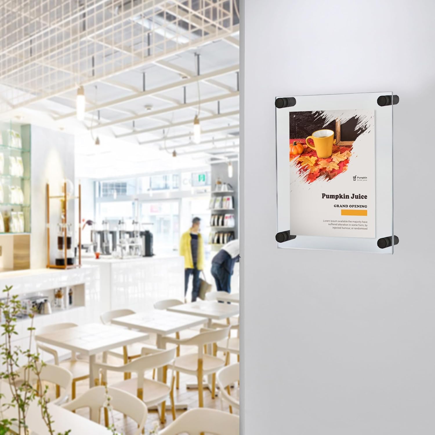- ✅ HARDWARE INCLUDED - Each floating sign holder frame set includes 2 acrylic panels that are 3/16” thick, 4 standoff caps and hanging hardware. Note: Large format sizes: 24” x 36” and 30” x 40” include 6 standoffs and caps.