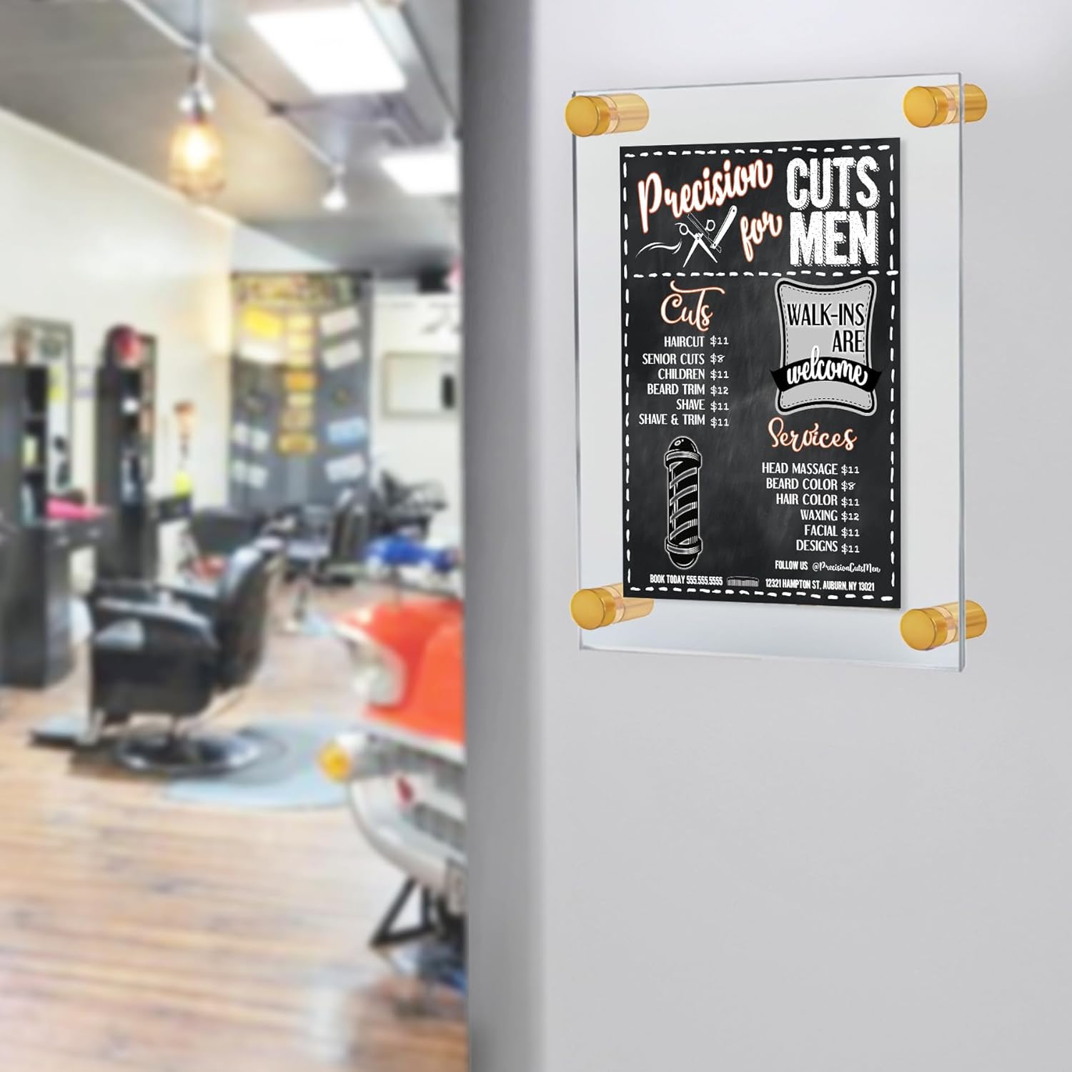 - ✅ HARDWARE INCLUDED - Each floating sign holder frame set includes 2 acrylic panels that are 3/16” thick, 4 standoff caps and hanging hardware. Note: Large format sizes: 24” x 36” and 30” x 40” include 6 standoffs and caps.