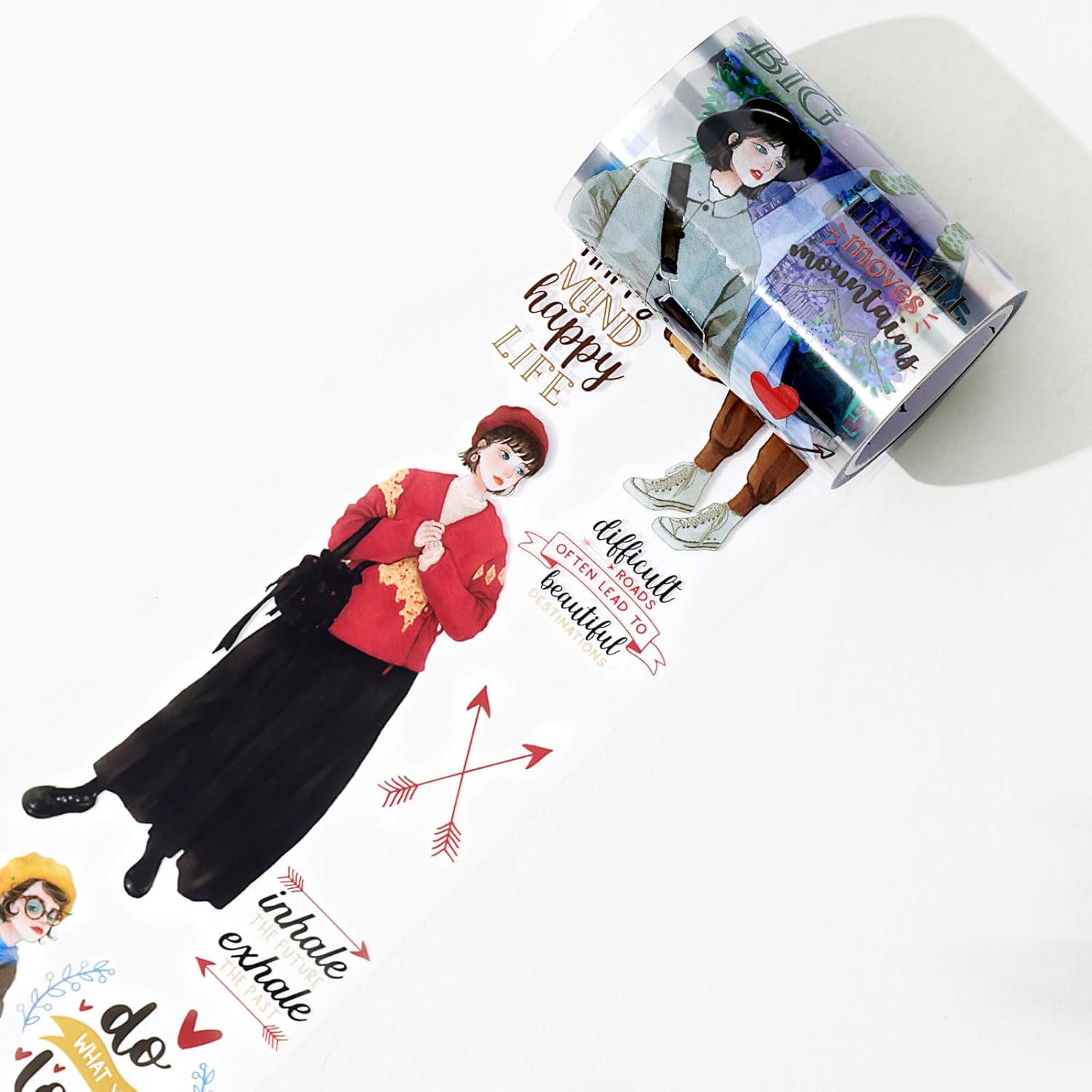 WT First Encounter Wide PET Tape, Single Roll, Original Designs, Transparent Clear Adhesive Tape, Modern Fashion Girls Decorative Tape for Journals, Scrapbook, Bujo Planners, DIY Crafts