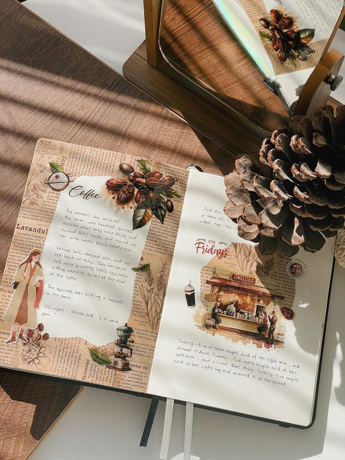 WT Caffeine Canvas Wide PET Tape, Single Roll, Original Designs, Watercolor Vintage Cafe Decorative Transparent Tape, Journal Scrapbook Bujo Planner DIY Craft Supplies, Coffee Theme