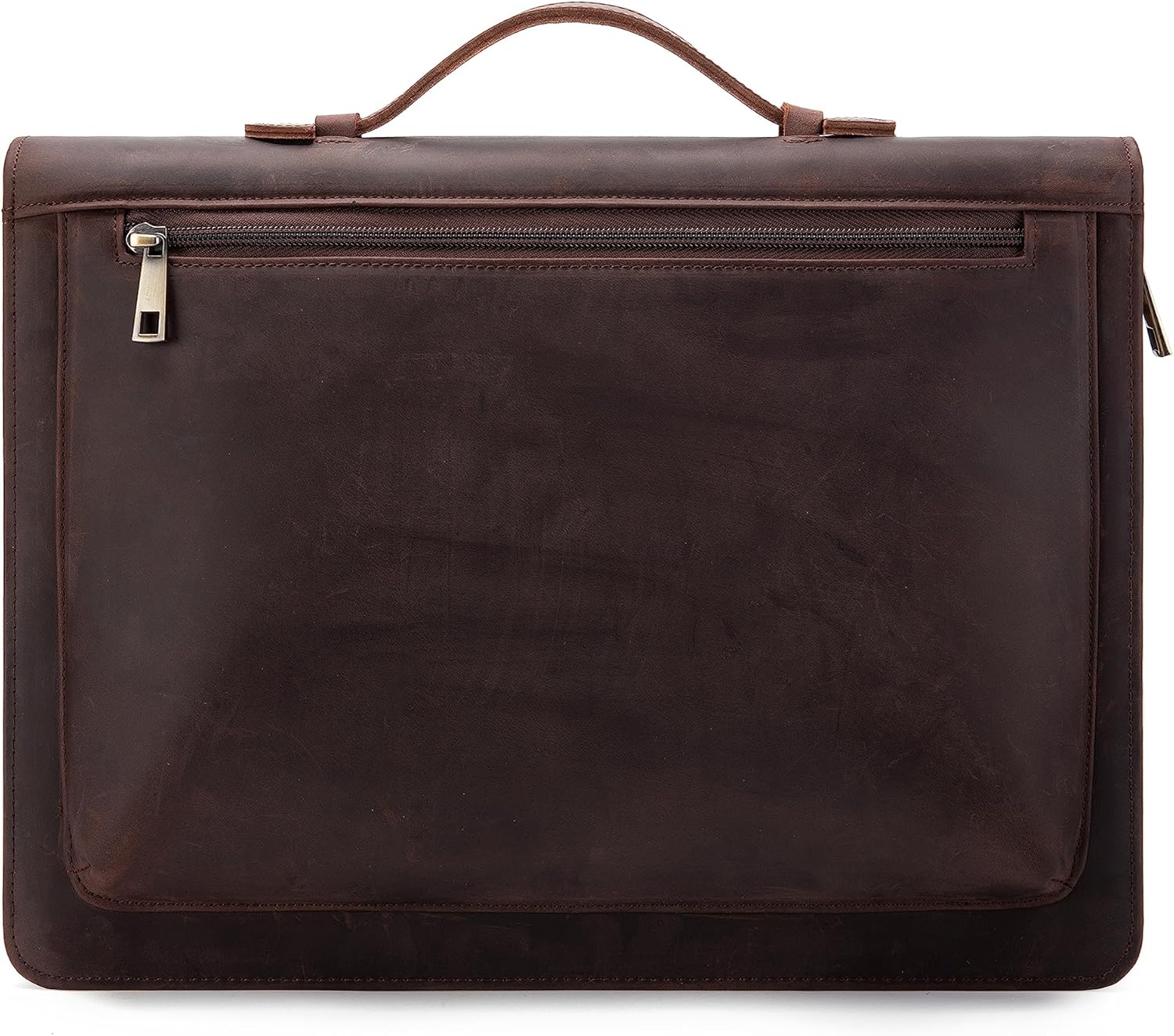 - GIVE THE PROFESSIONAL FIRST EXPRESSION –100% Full Grain Crazy-horse Leather, Our quality leather feels soft and luxurious while protecting all your important documents.Features portable handle for easy travel,Sturdy and smooth zipper, to ensure the safety of items; outside zippered pocket for quick-access,can hold A5-size documents; plenty of storage room and pockets to hold your phone, iPad, documents and other accessories.