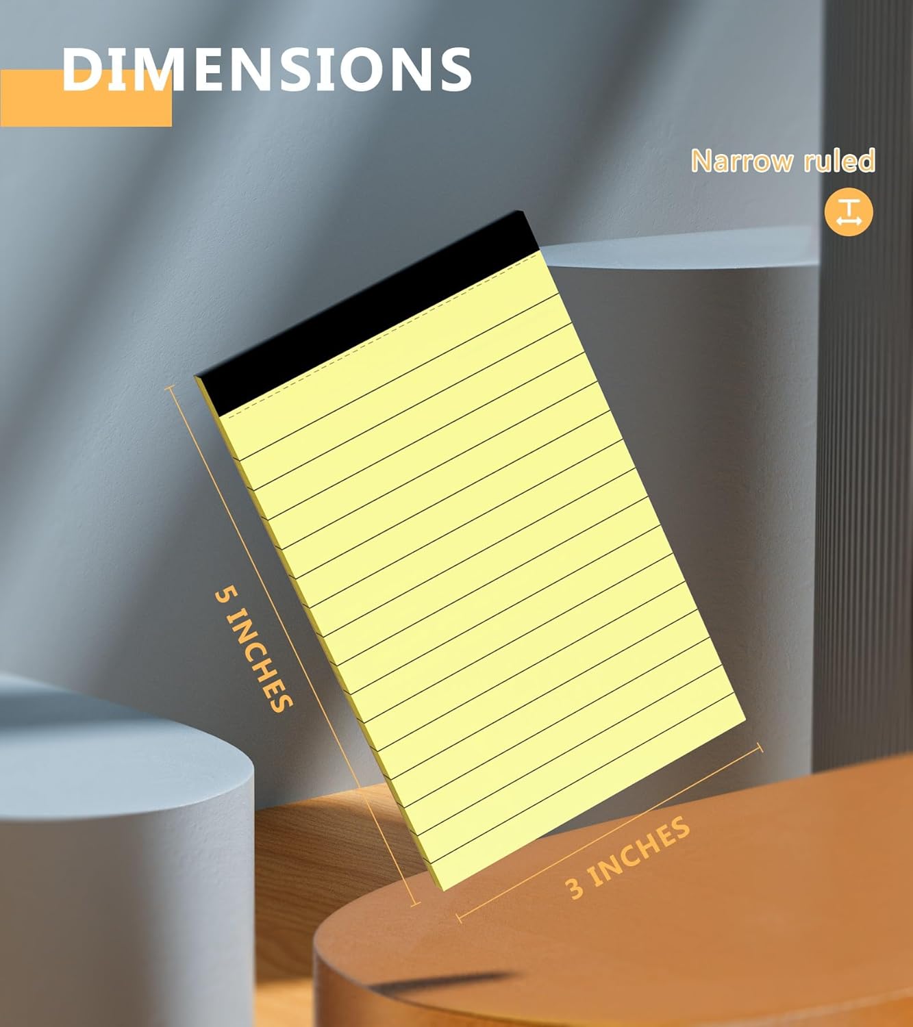 - 【Notepads】12 pack of 3 x 5 Inch notepads, each yellow notepad has 30 perforated, narrow ruled sheets, which is suitable for jotting down quick notes or detailed information. There are only lines on one side, you have the option of a blank sheet if you need it.