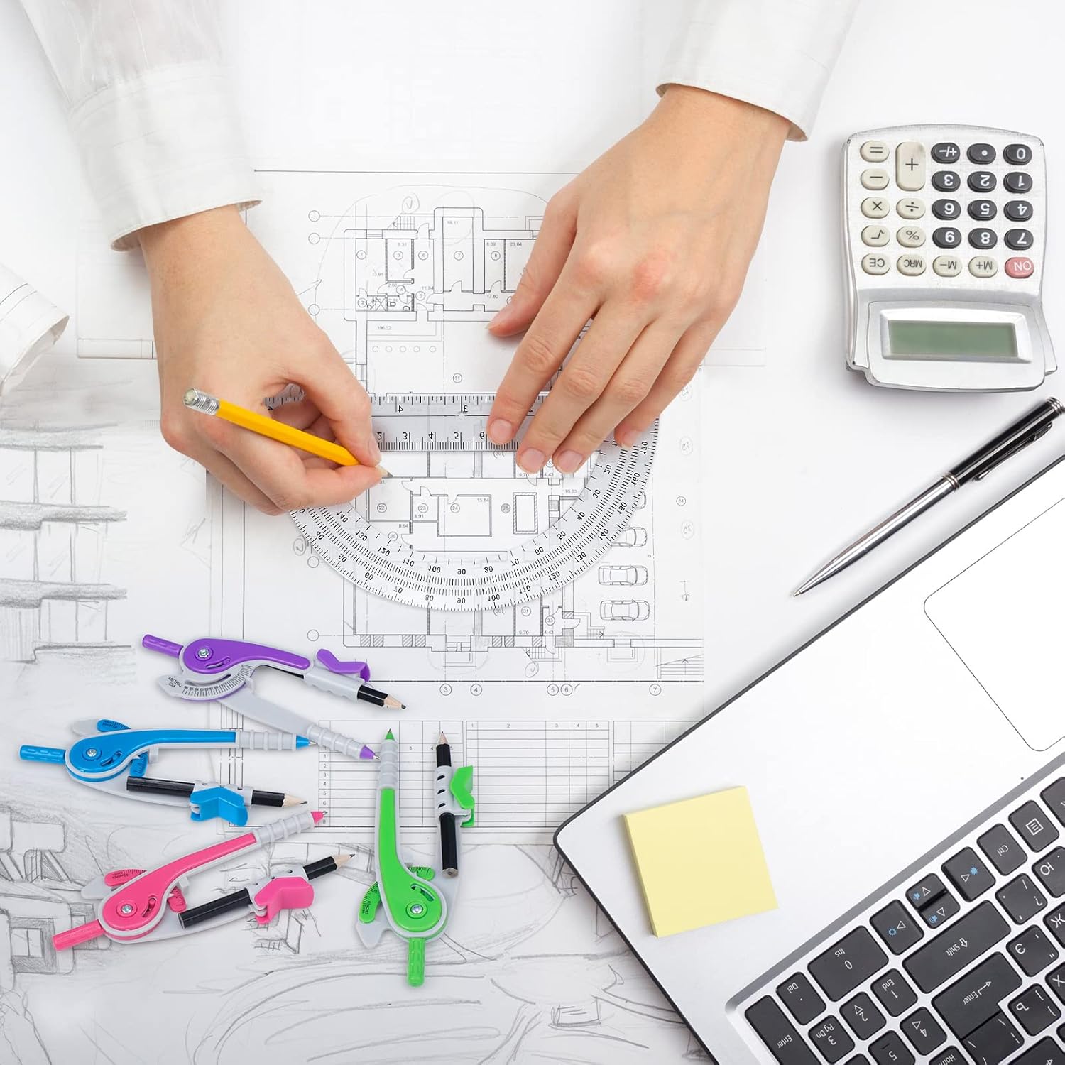 - Solid and Long Time Using: the geometry set is made of plastic, which are solid and not easy to break and deform, can serve you for a long time; The tip of the compasses is hard and pointed, which can work accurately, but when you are using, be careful the pointed tip