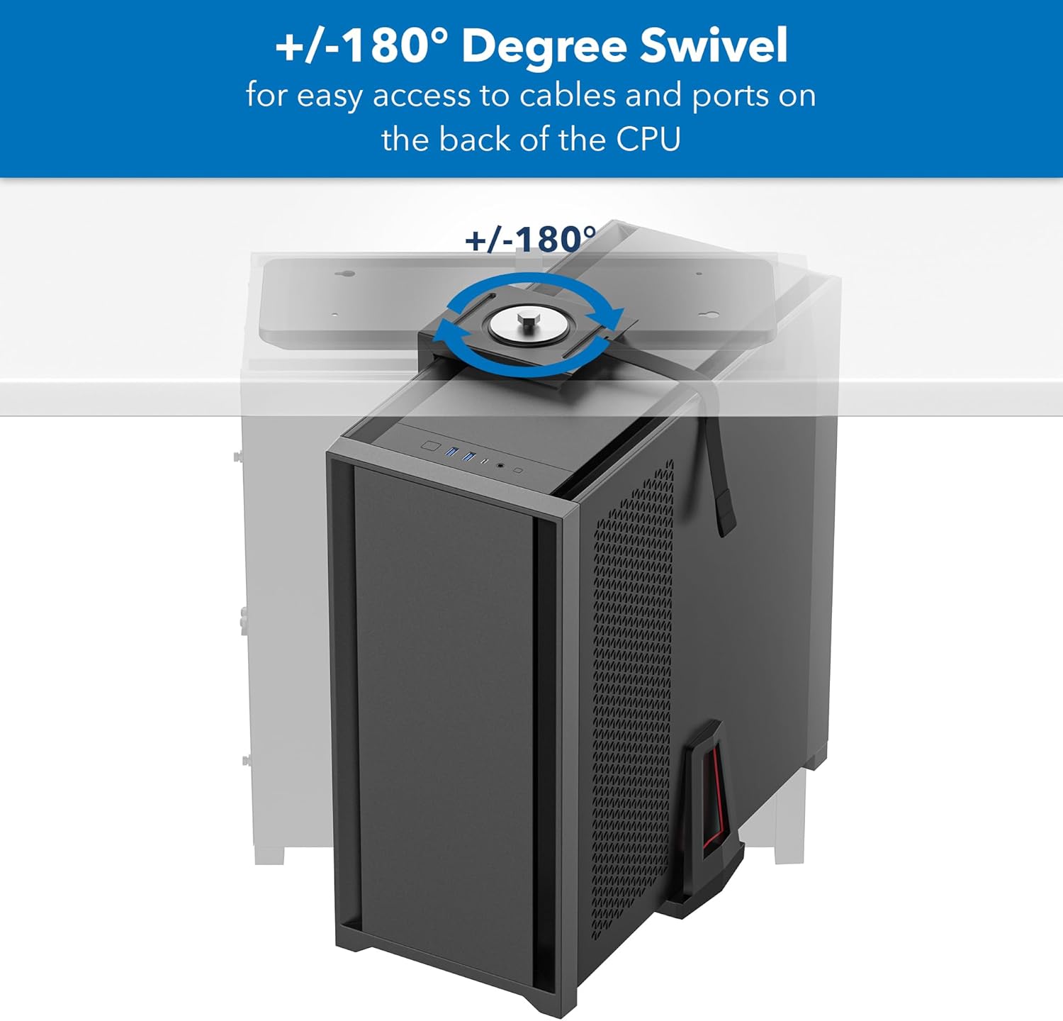 - EASY CABLE ACCESS: Thanks to the convenient integrated sliding track, you can easily pull forward your CPU and slide it back under your desk for secure storage. The swivel feature allows you to rotate the CPU bracket 180° left and 180° right for easy access to cables at the rear of your PC tower