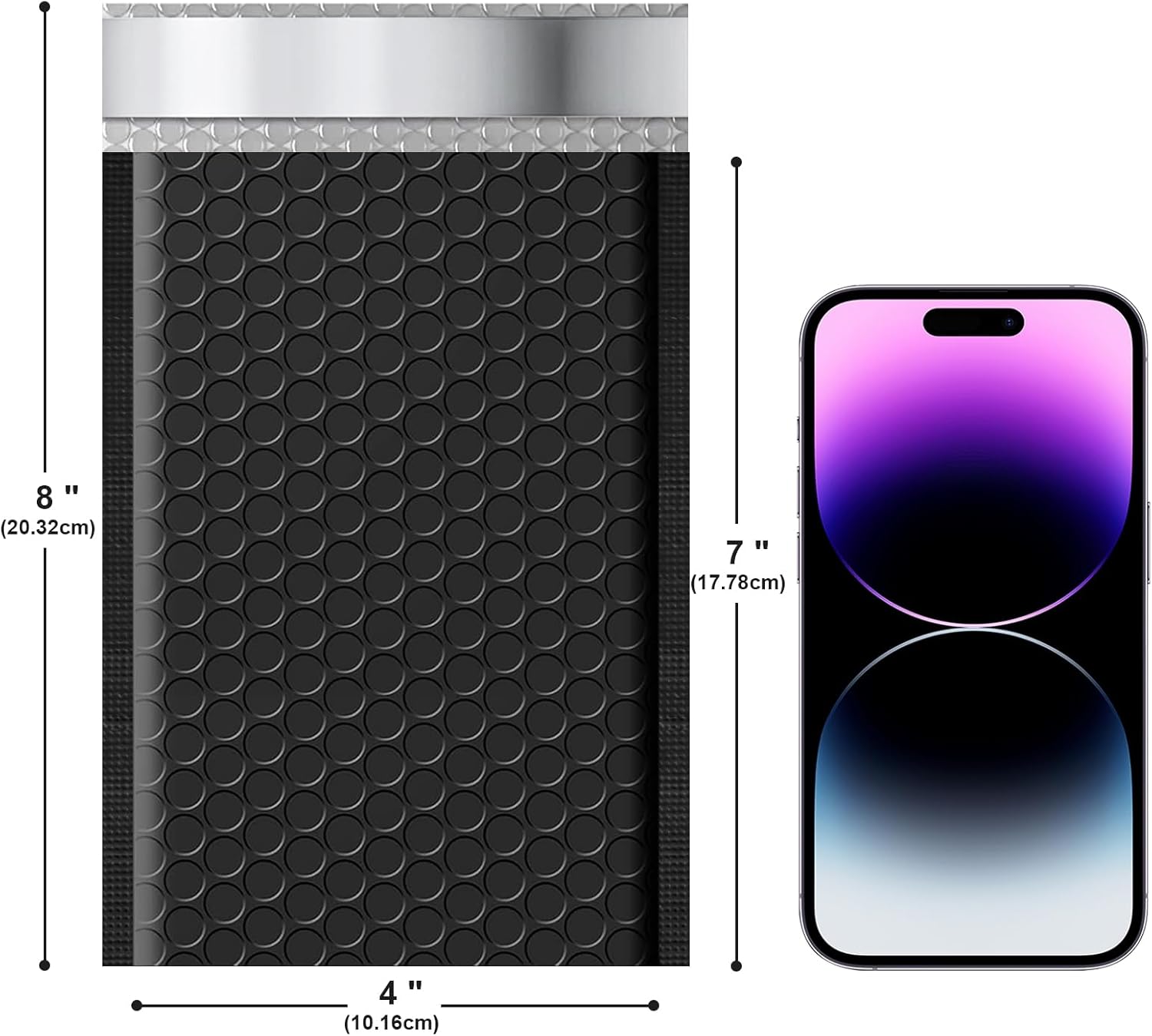 - Compact Private Bubble Mailers-- Usable Space: 4 x 7, Outer Size: 4x8 | Pack of 50 | Color: Black. Lightweight polyethylene bubble envelopes cut transportation costs and enhance packaging allure with fashionable colors. Crafted from premium polyethylene, these poly mailers offer absolute privacy protection.