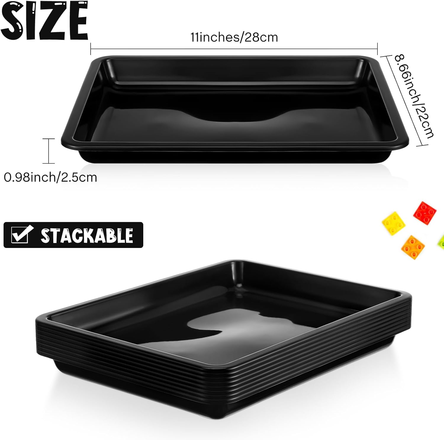 Maitys 24 Pcs Plastic Art Trays 11 x 8.7 x 1 Inch Activity Craft Tray Organizer Serving Tray Stackable Storage Sand Trays for School Painting Beads Crafts DIY Projects(Black)
