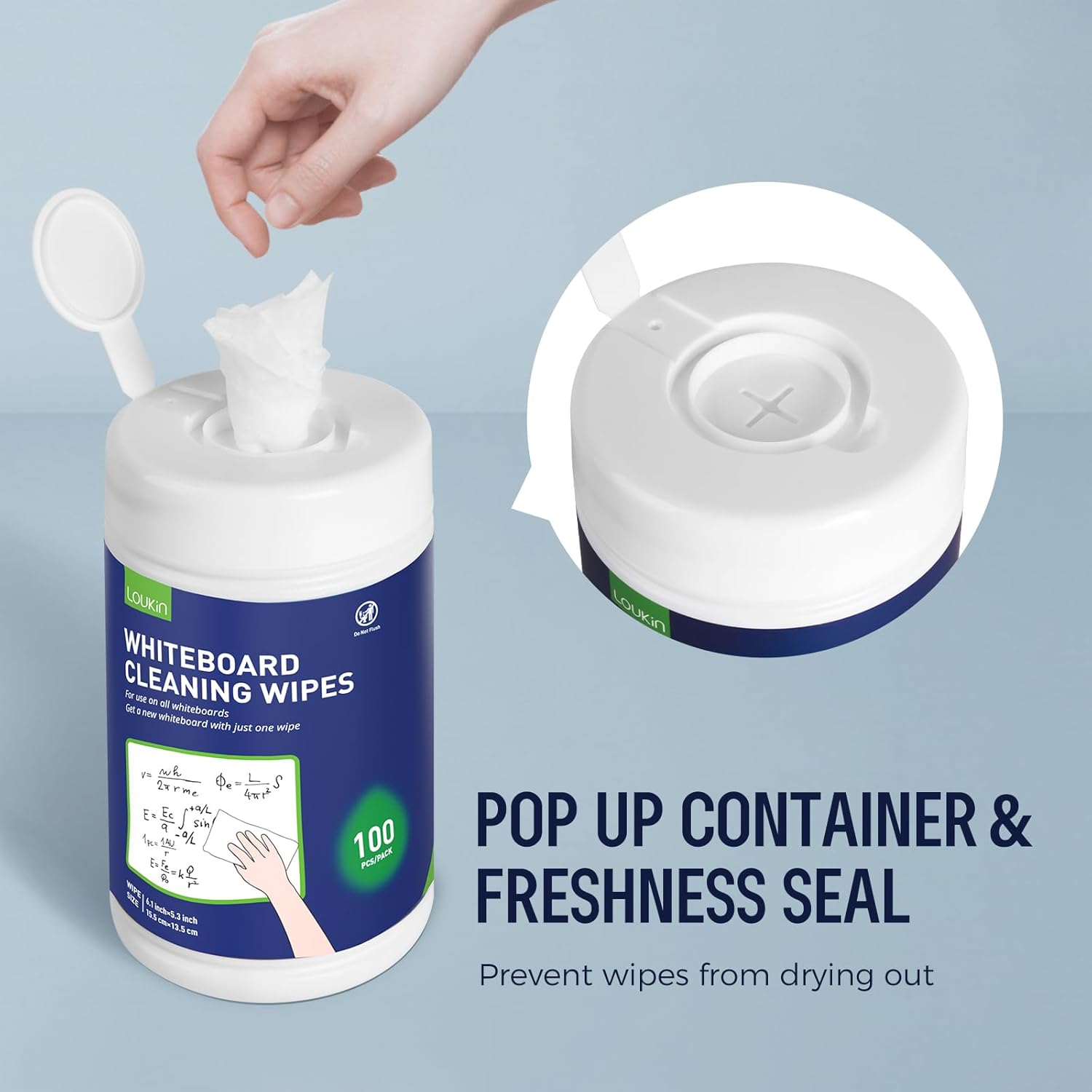 Loukin Whiteboard Cleaning Wipes, Dry Erase Board Cleaning Wipes, Non-toxic Whiteboard Wipes, 100 Wipes per Canister, 3 Pack