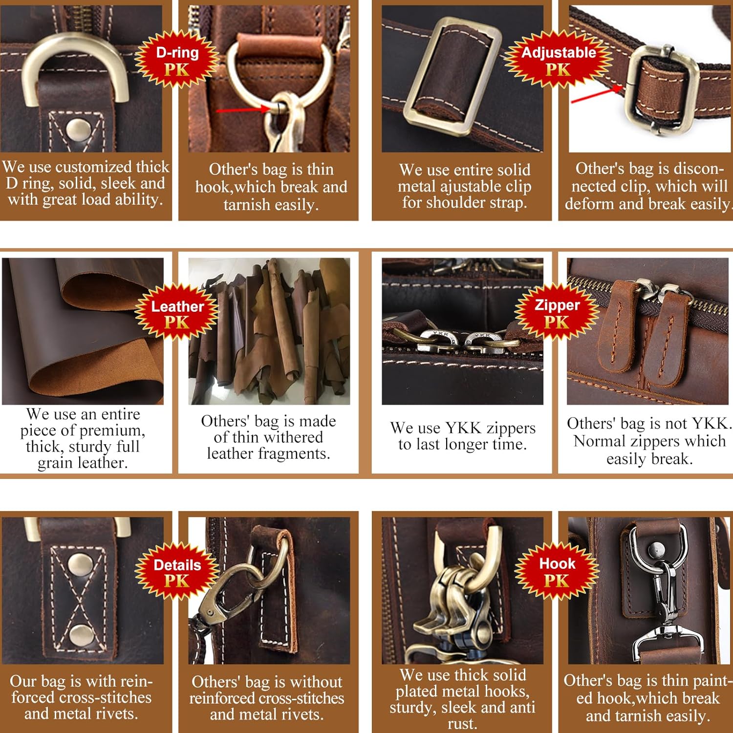 - 【Purchase with Confidence】One year quality commitment since you buy the men’s laptop briefcase, if you have any questions or concern, please reach us, we will help you to resolve any issues. This men’s leather work bag is a great present for birthday, anniversary, Valentine's day, father's day, Christmas