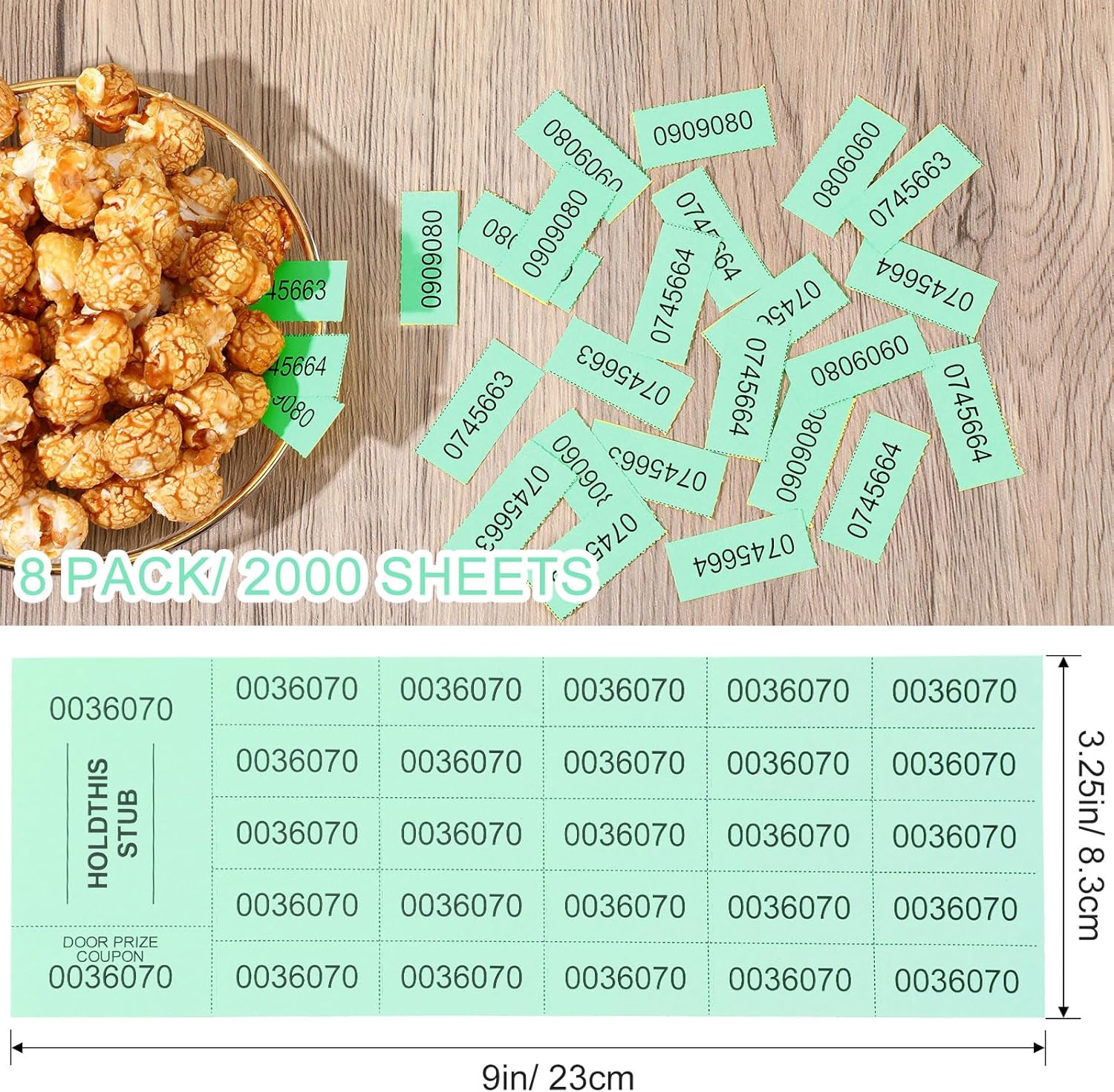 - Abundant Auction Tickets: you will receive 2000 sheets raffle tickets in beautiful colors (as pictures), each sheet with 25 bid numbers, 1 stub, 1 door prize ticket; These Chinese raffle tickets sheets are easy for management during raffle events, and have tear lines for easy separate each section, allowing people to bid on different items