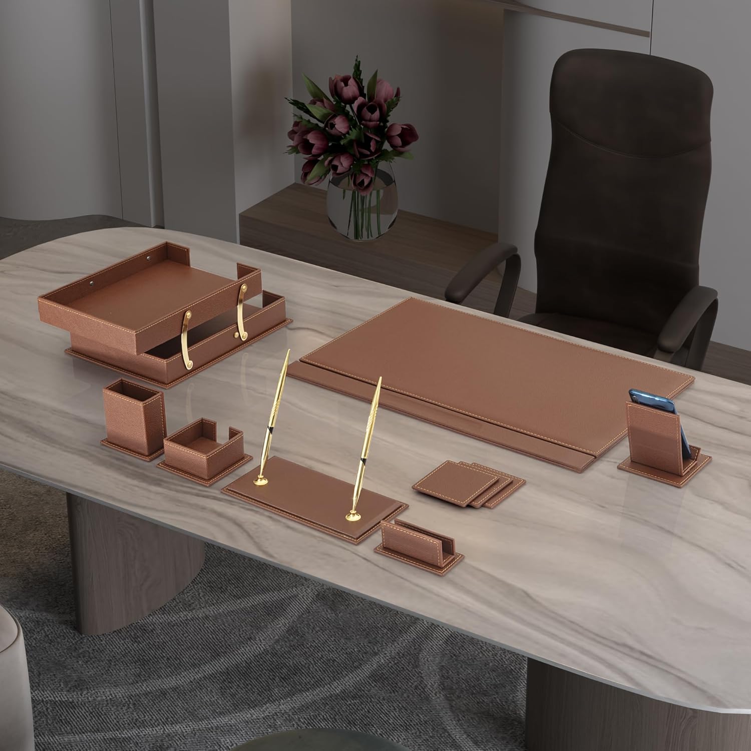 Bonded Set Luxury Leather Desk Pad & Desk Organization Essentials Desk Organizer Leather Desk Organizers