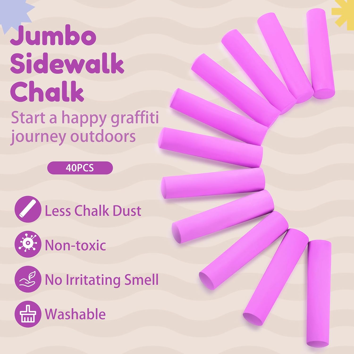 - Package Information: you will get 40 pieces of jumbo sidewalk chalks, allowing you to write and draw on the sidewalk or on the blackboard; Sufficient quantity will meet your using needs, and you can share them with your family