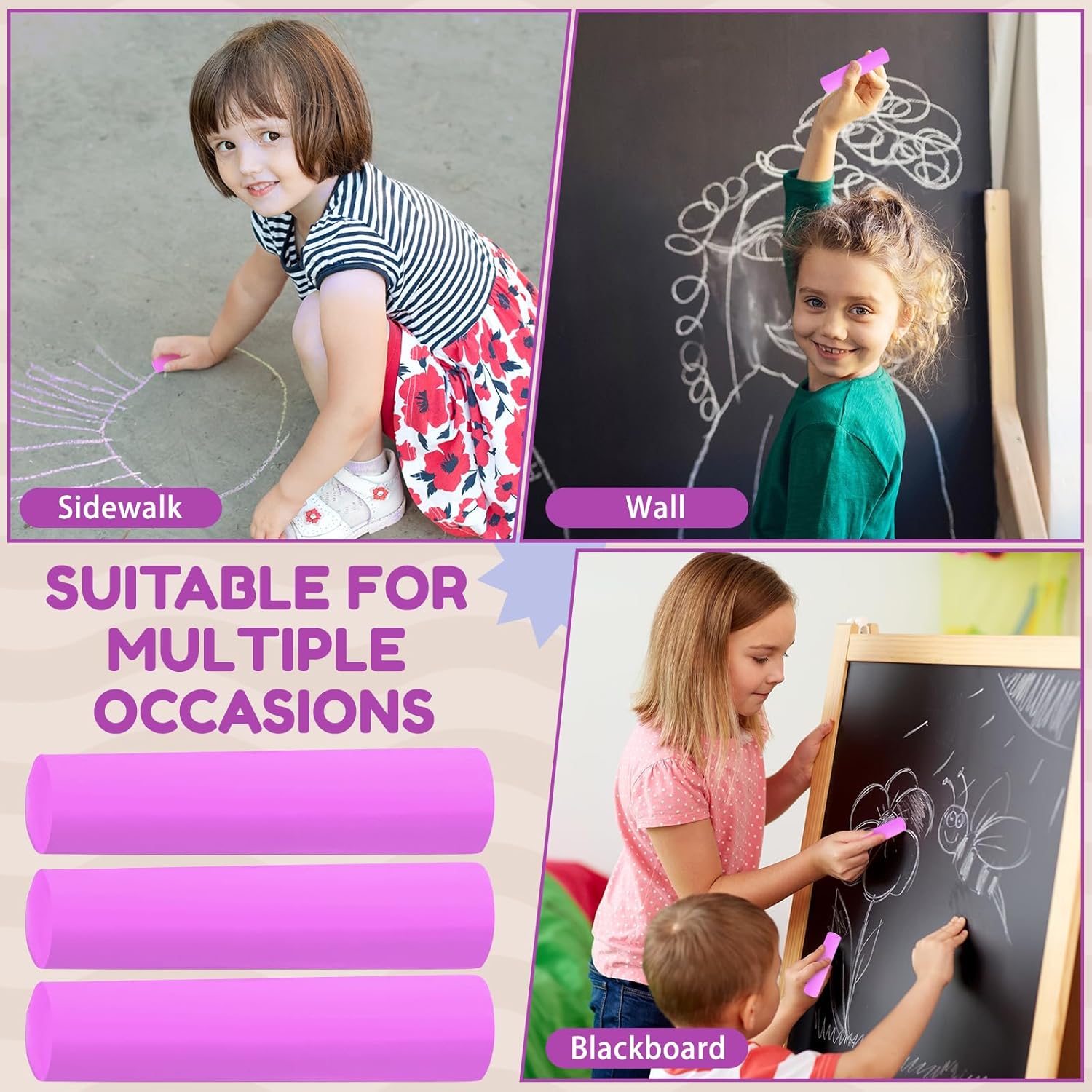 - Widely Applicable: you can use these kids sidewalk chalks on various occasions, for drawing, painting, etc., and you can use them to mark the buildings, to DIY, to decorate your wall, to make some crafts, which will bring you a lot of fun