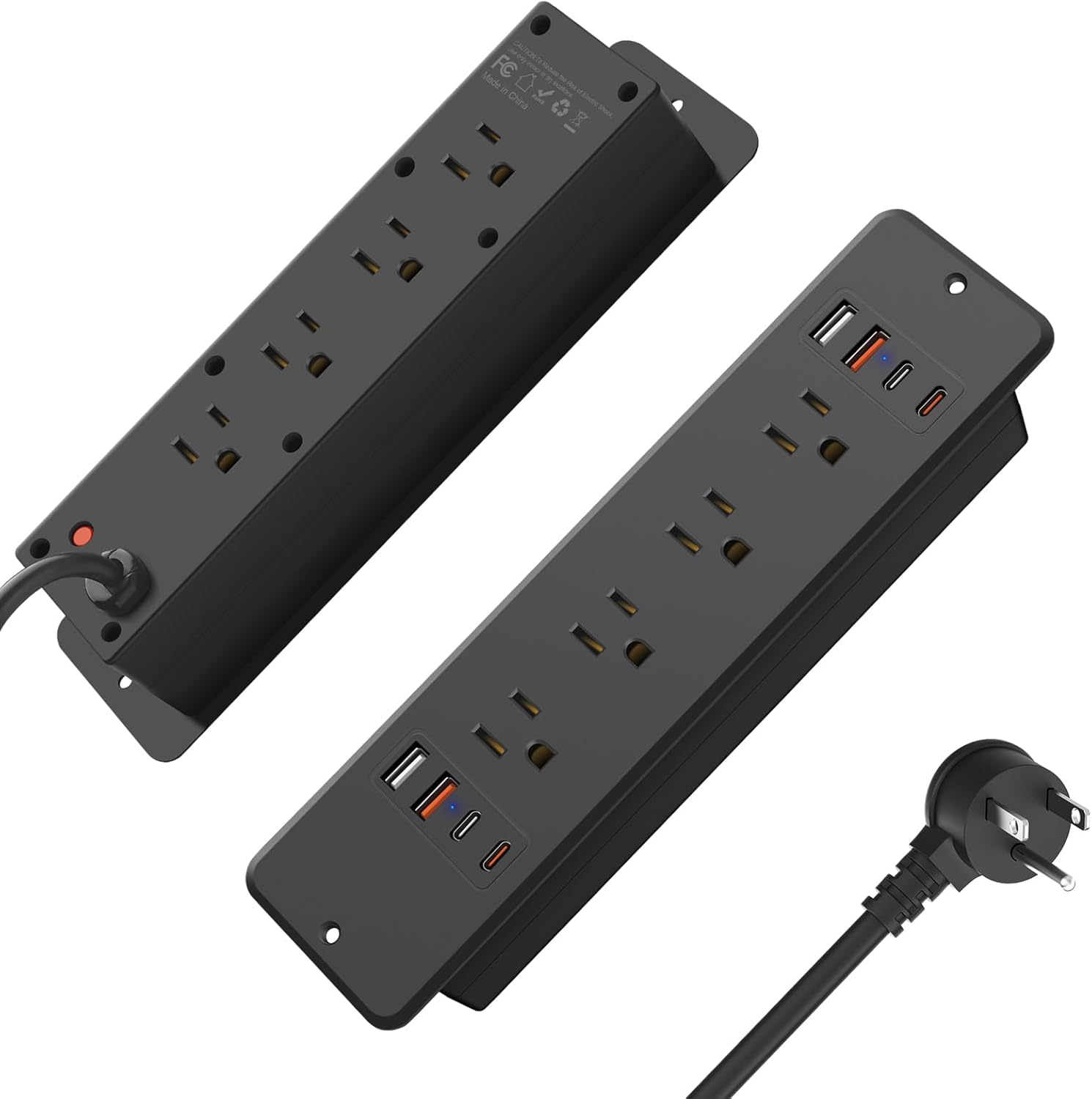 HHSOET 8 Outlet Recessed Power Strip, 30W Fast Charging Furniture Power Outlet USB C, Flush Mount Surge Protection Socket with 4 USB-A and 4 USB-C, 6ft Power Cord. (Black)