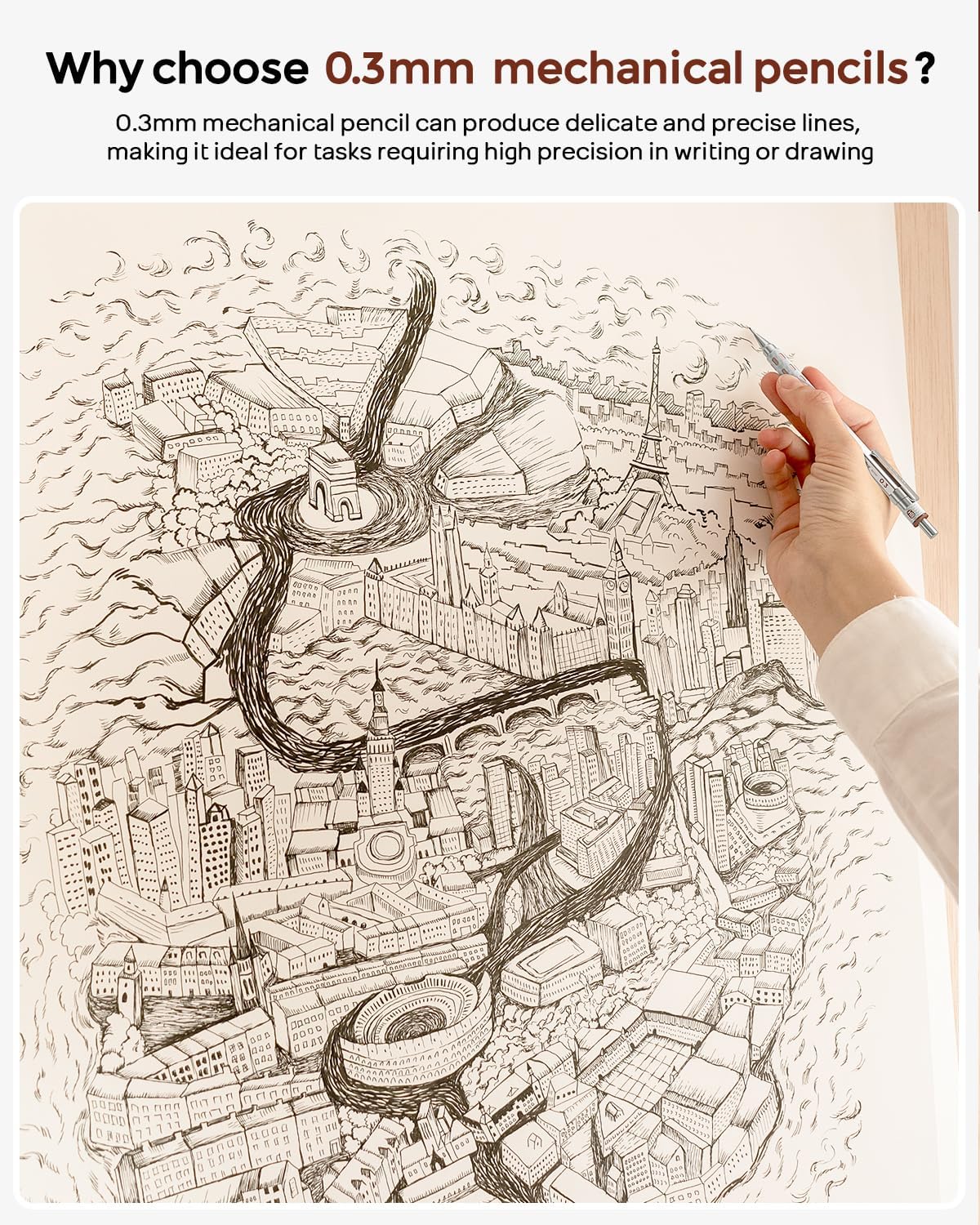 - 0.3mm HB Lead: Extra durable lead is stronger than standard lead, produce thin clear line & marks,works with mechanical pencil with no need to sharpen.Easily correct mistakes with a replaceable eraser or 4B eraser. Perfect supplies for writing,drafting, drawing & template work