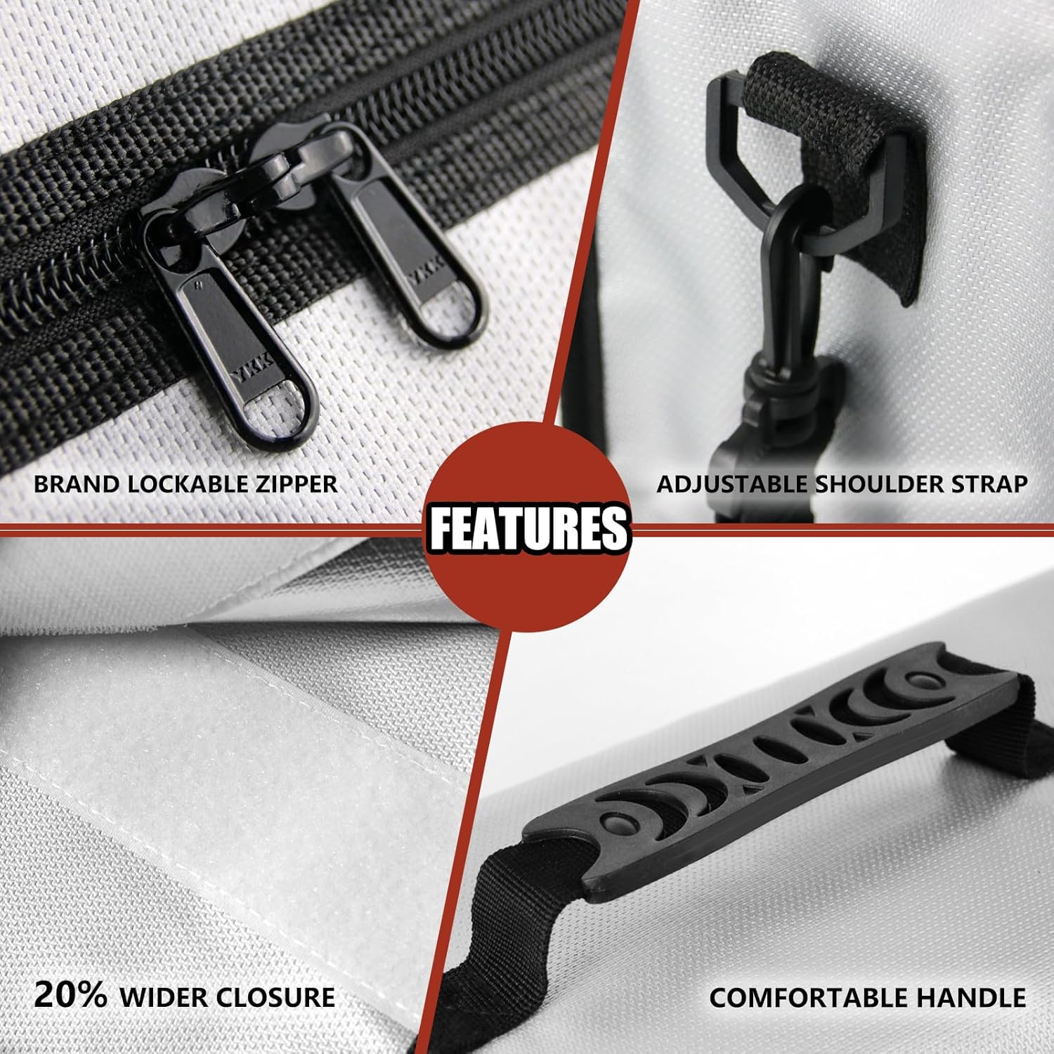 - [NON-ITCHY & EASY TO CARRY FOR TRAVEL & EMERGENCY PREPARATION]: Coated with advanced non-itchy silicone, our fire safe document bag allows direct handling without the need for gloves. With Comfortable Handle & Adjustable Shoulder Strap, it's designed for effortless portability, whether for travel or emergency preparedness. Reliable in all weather conditions, our fireproof bag ensures your valuables are always well protected & prepared for Grab & Go in emergency.