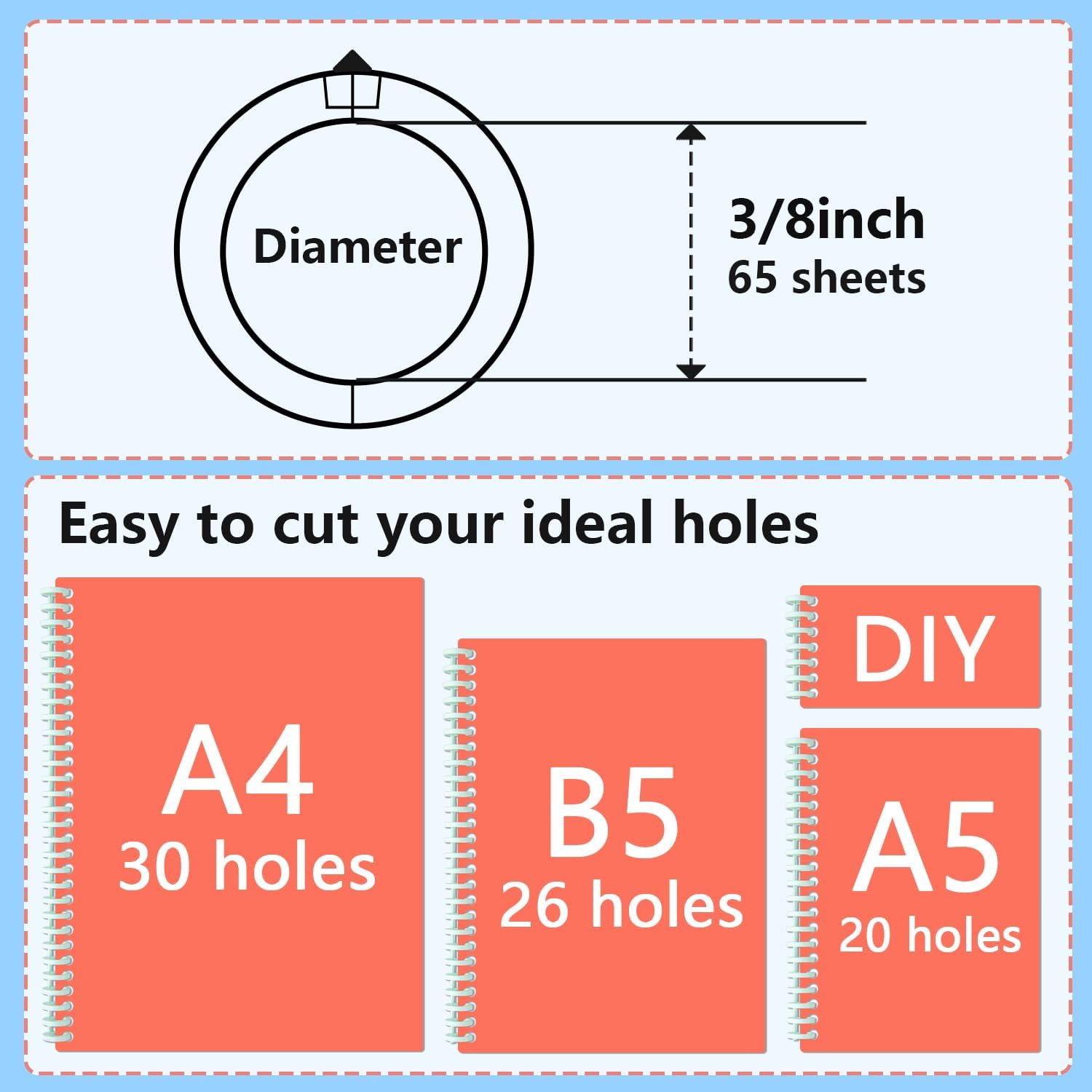 - Refillable 65 sheet spiral binding paper: Each spiral binding coil is with maximum capacity 65 sheets of refilling paper, making them a cost-effective and convenient choice for all your binding needs.