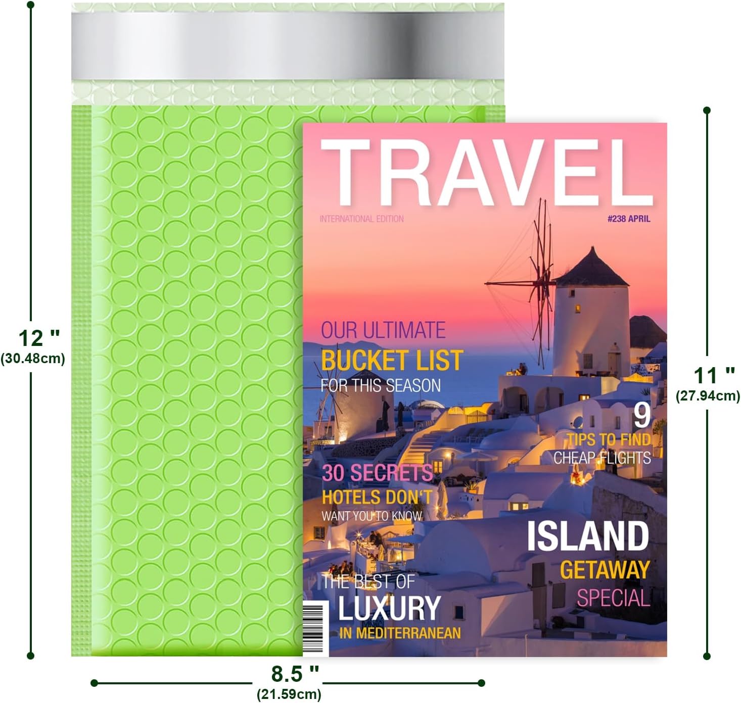 - Compact Private Bubble Mailers-- Usable Space: 8.5x11, Outer Size: 8.5x12 | Pack of 25 | Color: Light Green. Lightweight polyethylene bubble envelopes cut transportation costs and enhance packaging allure with fashionable colors. Crafted from premium polyethylene, these poly mailers offer absolute privacy protection.