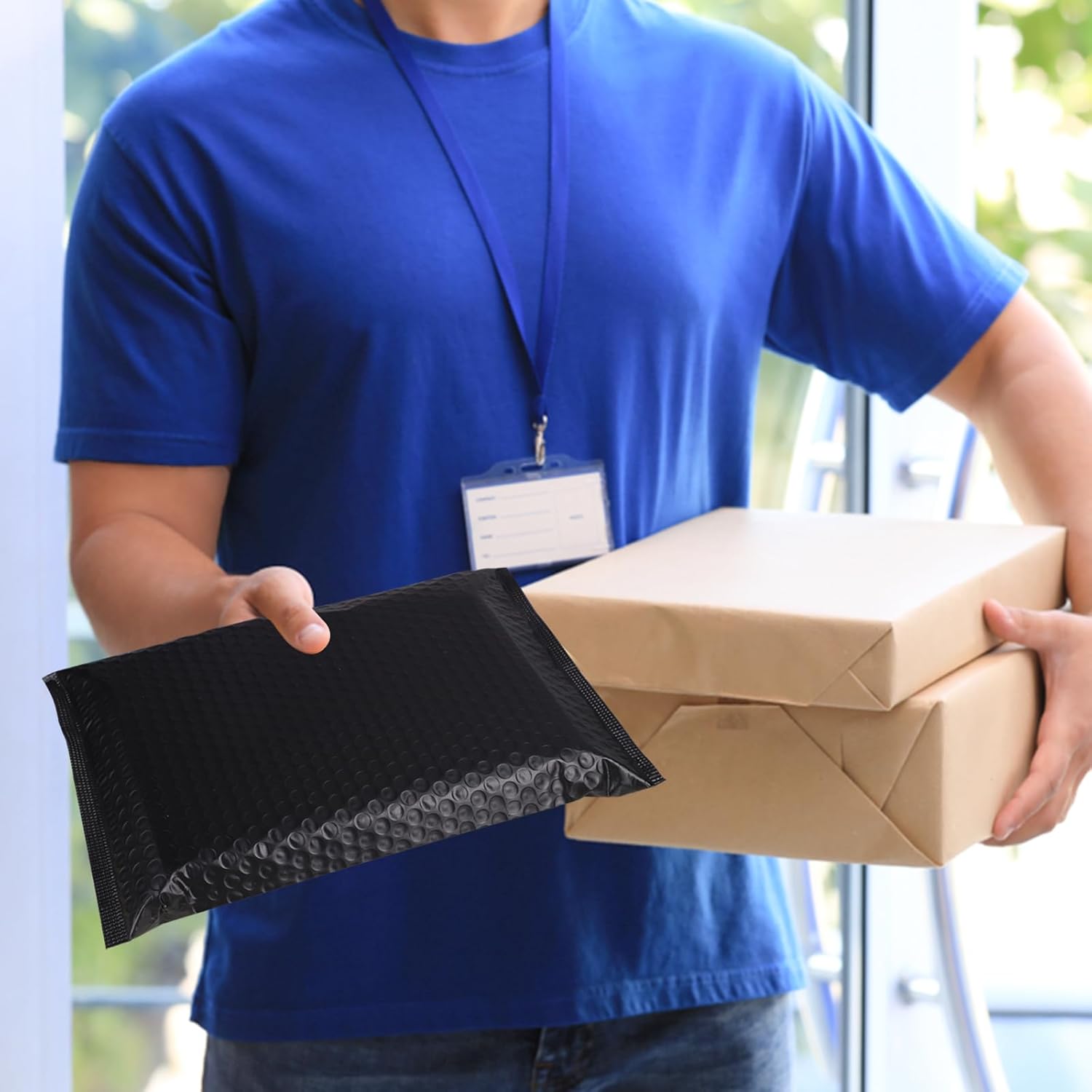 - Compact Private Bubble Mailers-- Usable Space: 8.5x11, Outer Size: 8.5x12 | Pack of 25 | Color: Black. Lightweight polyethylene bubble envelopes cut transportation costs and enhance packaging allure with fashionable colors. Crafted from premium polyethylene, these poly mailers offer absolute privacy protection.
