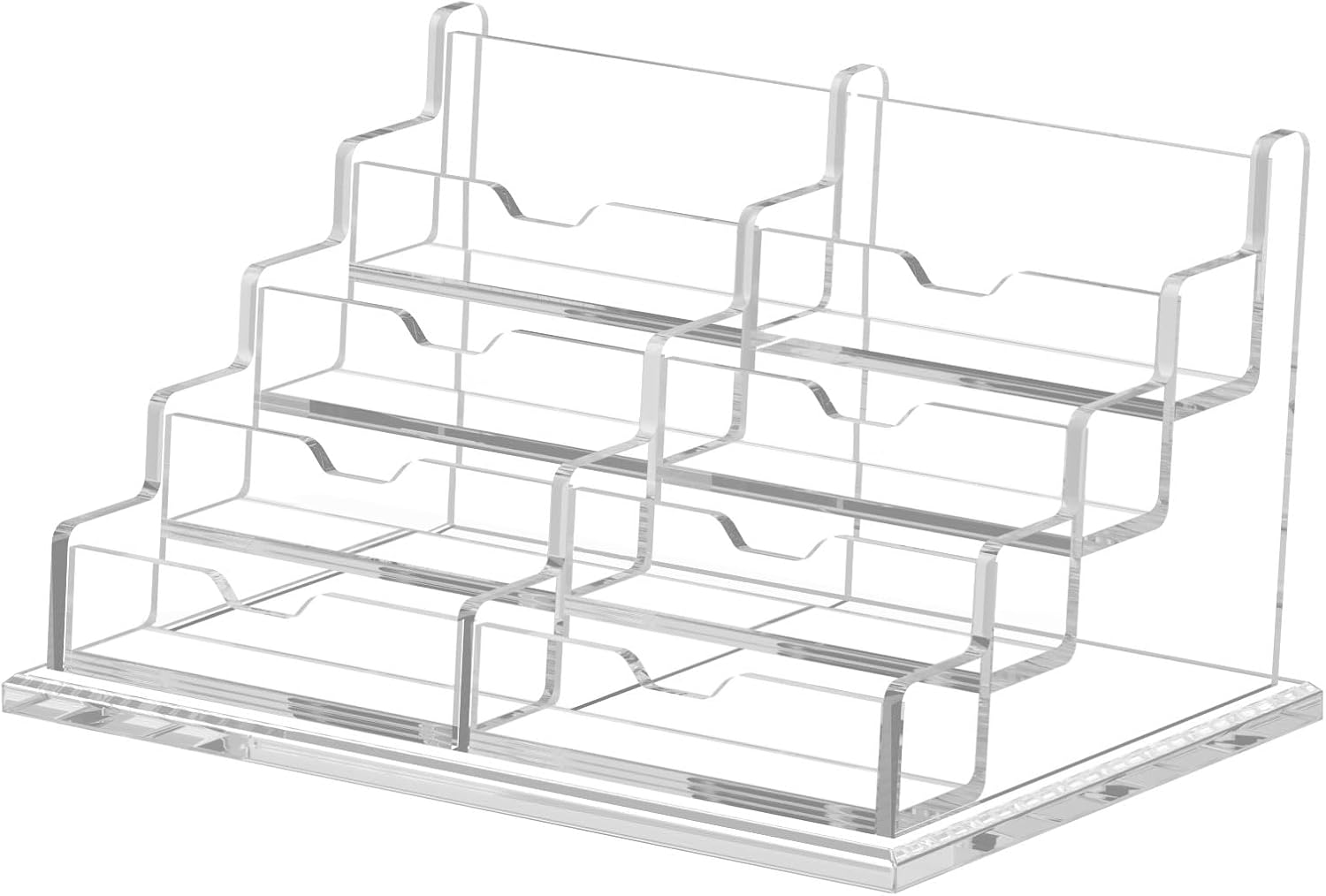 NIUBEE Clear Business Card Holder 4 Tier Acrylic Business Card Stand, 8 Slots Business Card Display for Desk Counter, 600 Card Capacity, 1 Pack