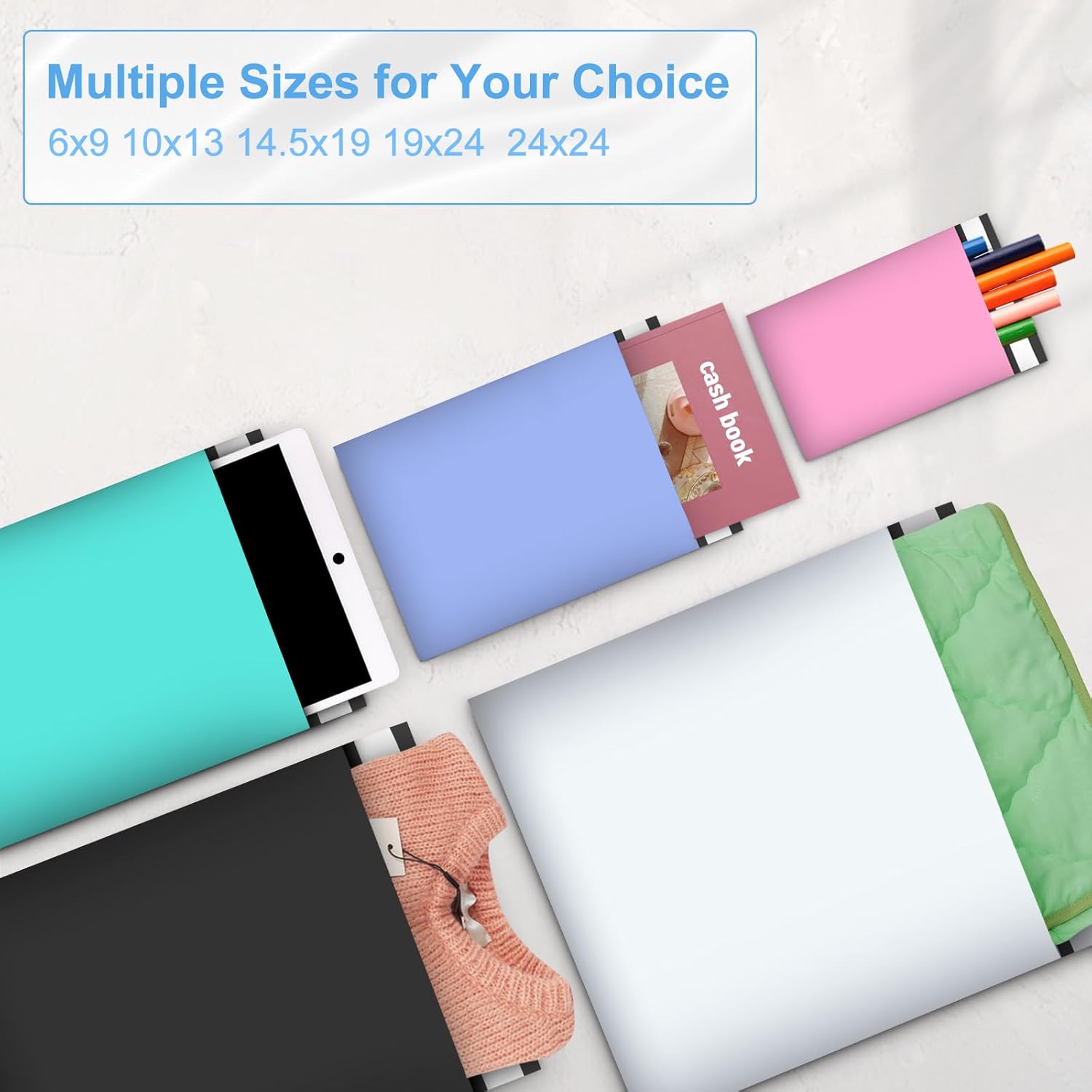- Multiple Sizes and Colors--- The shipping packages provide a variety of colors and sizes to meet various needs. Beautiful colors have the ability to bring happiness to your customers and boost your brand influence.