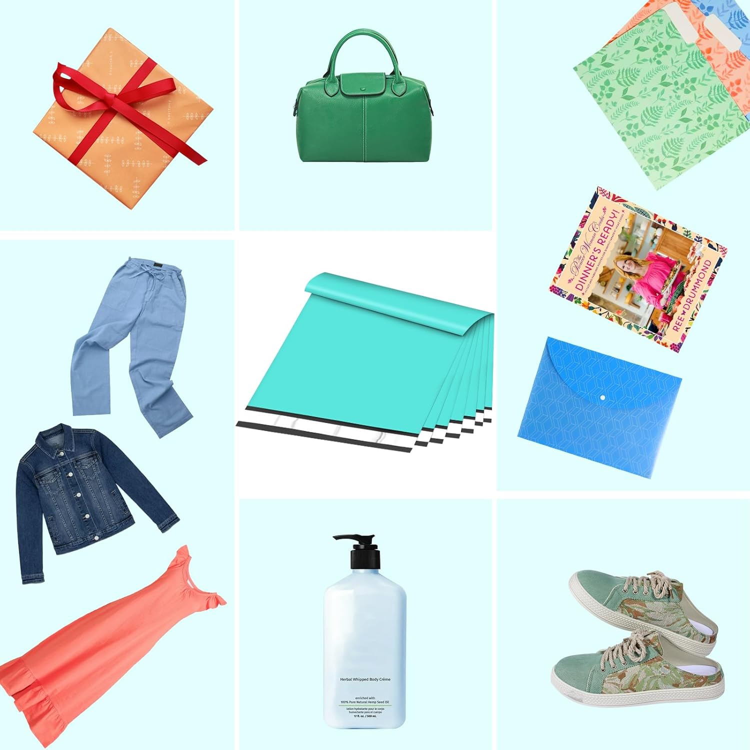 - Eye-Catch Poly Mailers Bags--- Usable size: 14.5x19 Inch, 100Pack. These shipping bags have a teal outer surface, and gray inner lining, a highly attractive color that makes your products look better. Their smooth texture makes it easy to affix self-adhesive stamps and address labels, helping you customize your brand.