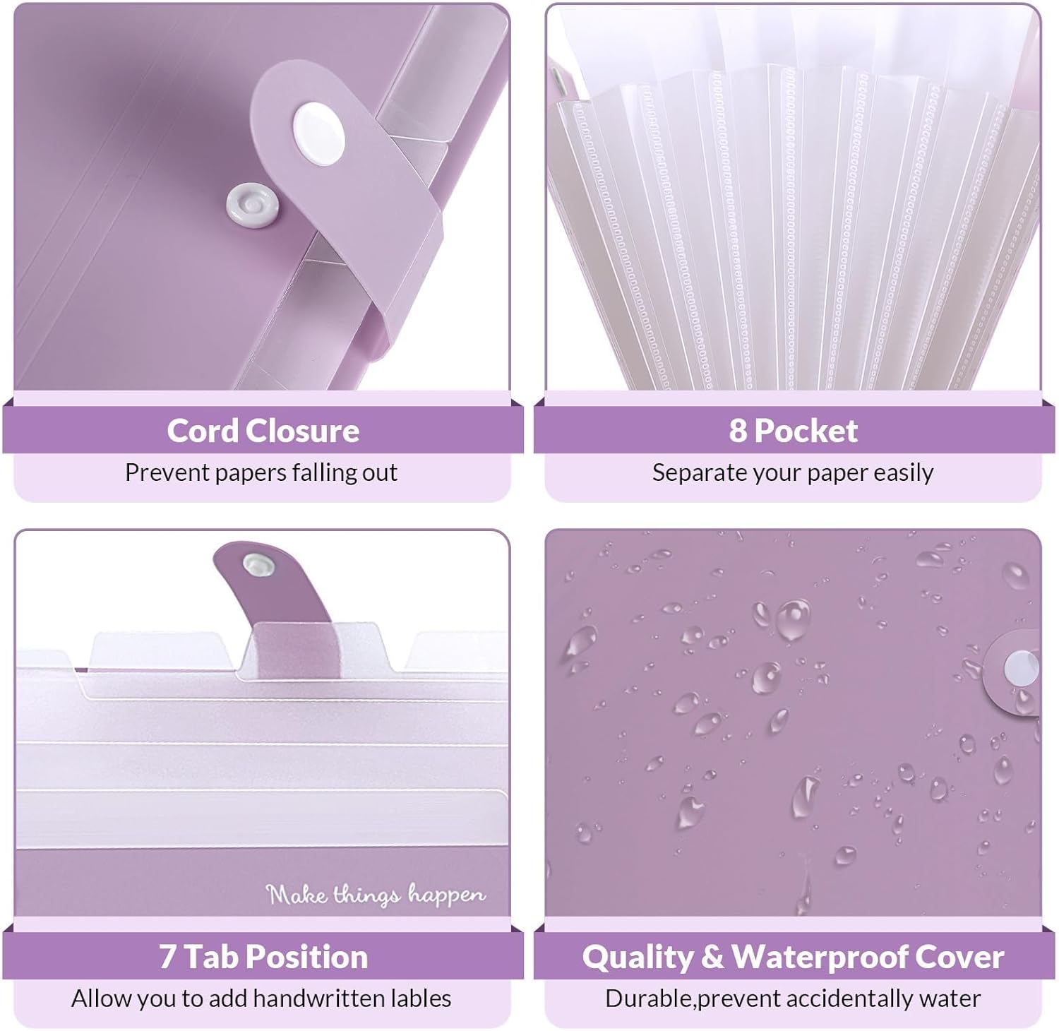 SKYDUE File Folder with Labels, Accordion File Organizer with 8 Pockets, Portable Document Organizer, A4 Letter Size, Paper Organizer for Office, Purple