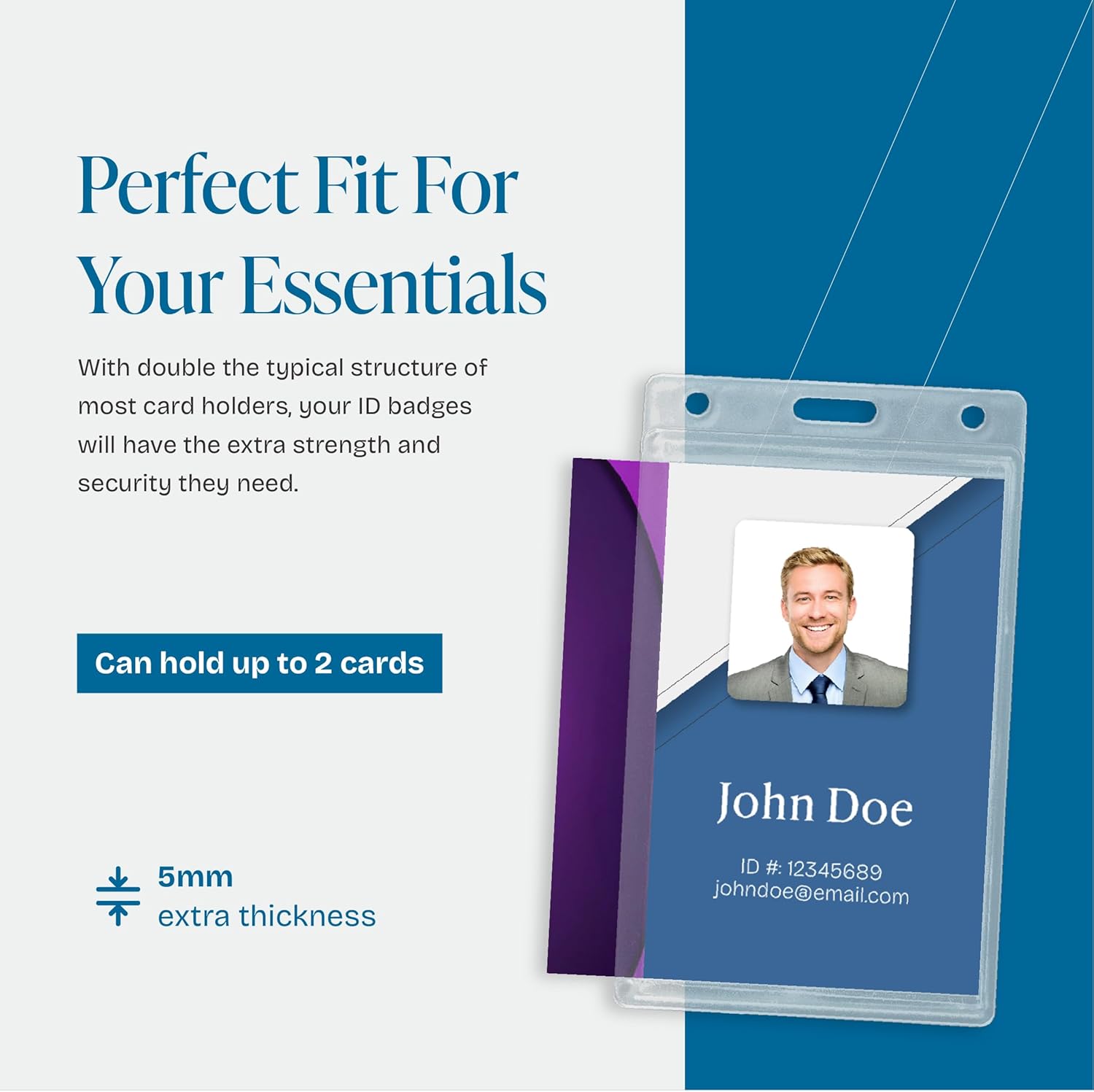 - 【Classic Layout】 This Clear ID Badge Holder has 3 hole mounts on top, 1 large hole for works perfectly for any retractable reel or lanyard, and the other 2 are for key ring attachment; The compact size and lightweight make ID Case easy to fit in your front or back pocket. Vertical ID Badge Holders also conveniently fit in backpacks and purses.