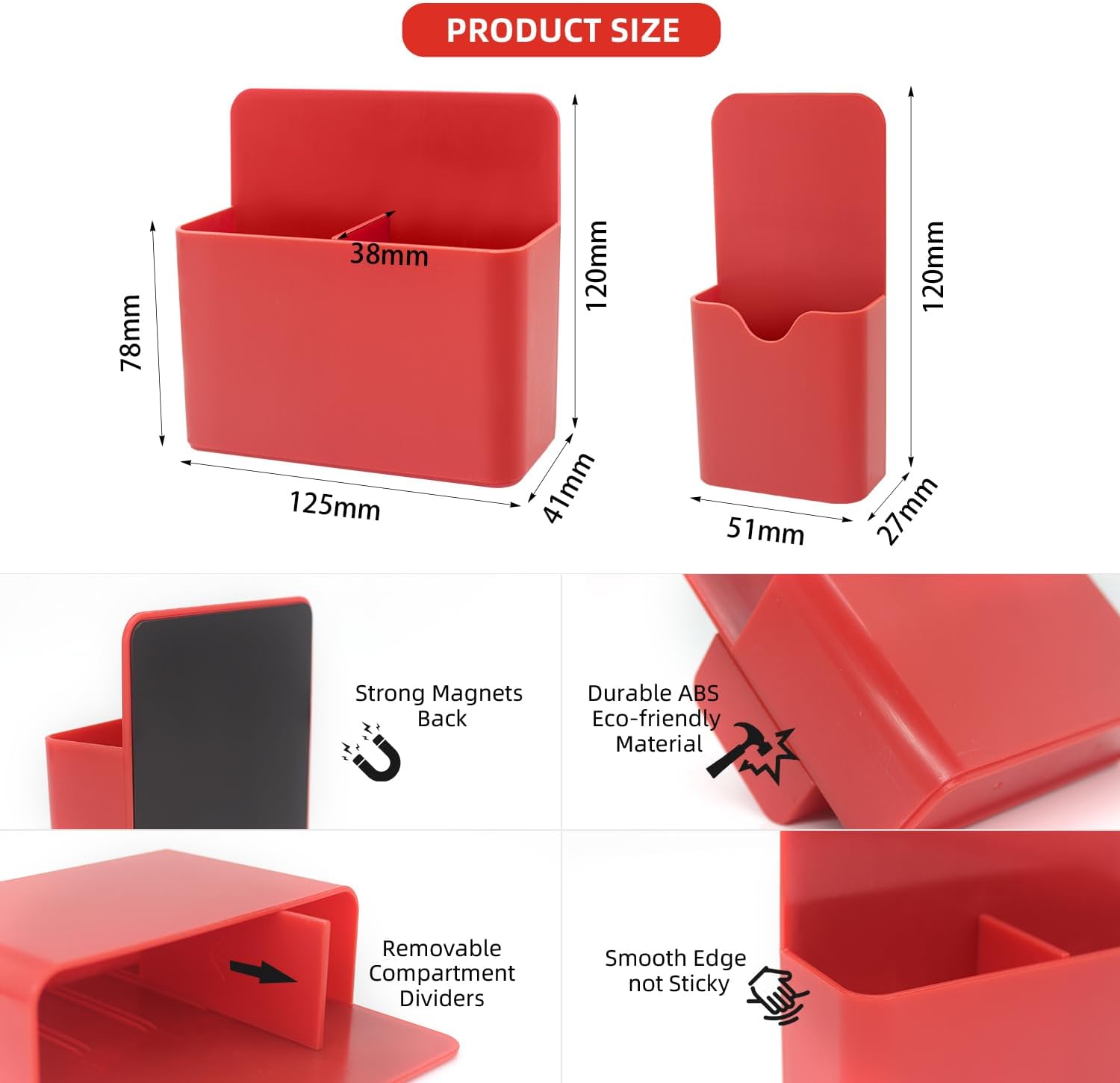 - Simple and Practical:Our magnetic pen holders are suitable for holding pens, pencils, dry erase markers, erasers, rulers, children's scissors and other office, home or school supplies. Also can be served for refrigerator, whiteboard, locker or other metal surfaces.Keep your stuff always organized!