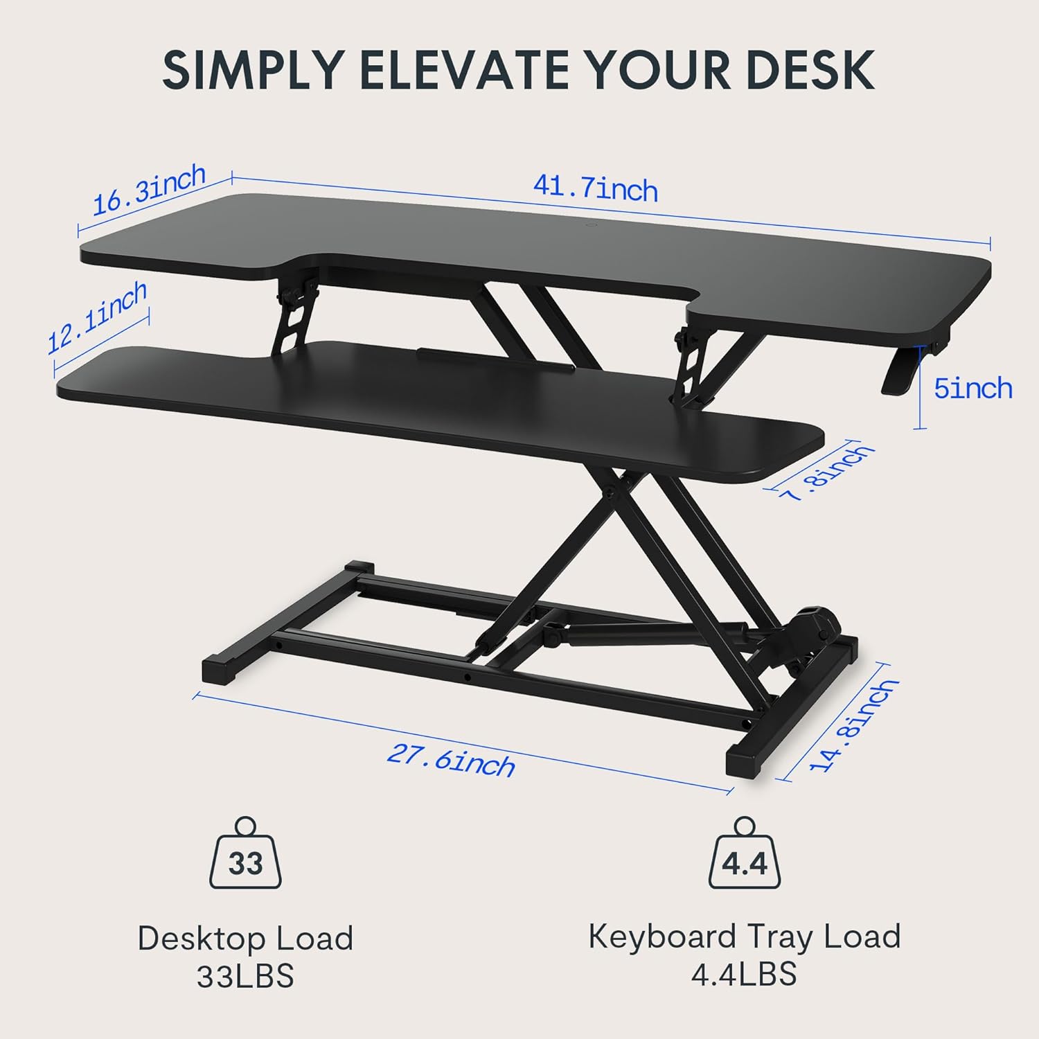 - Double Layer Office Space: This adjustable standing desk converter with a wide desktop is super space-saving and has enough space for all of your gadgets, it can hold a computer monitor, paperwork, and tablet, phone, notebook, coffee, and so much more! An oversized keyboard tray that accommodates flexible setup options.
