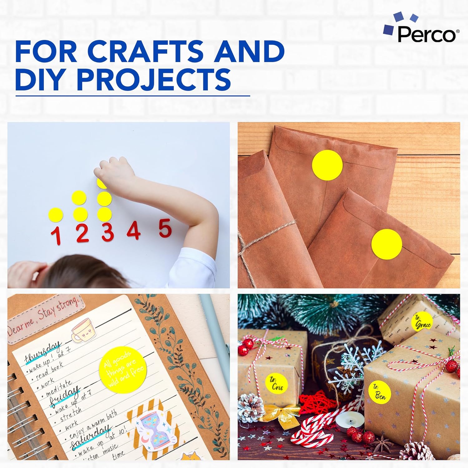 Perco Fluorescent Yellow 2-Inch Round Sticker Labels with Easy Peel Perforation - 500 Labels per Roll - Strong Adhesion, Vibrant Colors for Organizing, Crafting & More - Made in USA