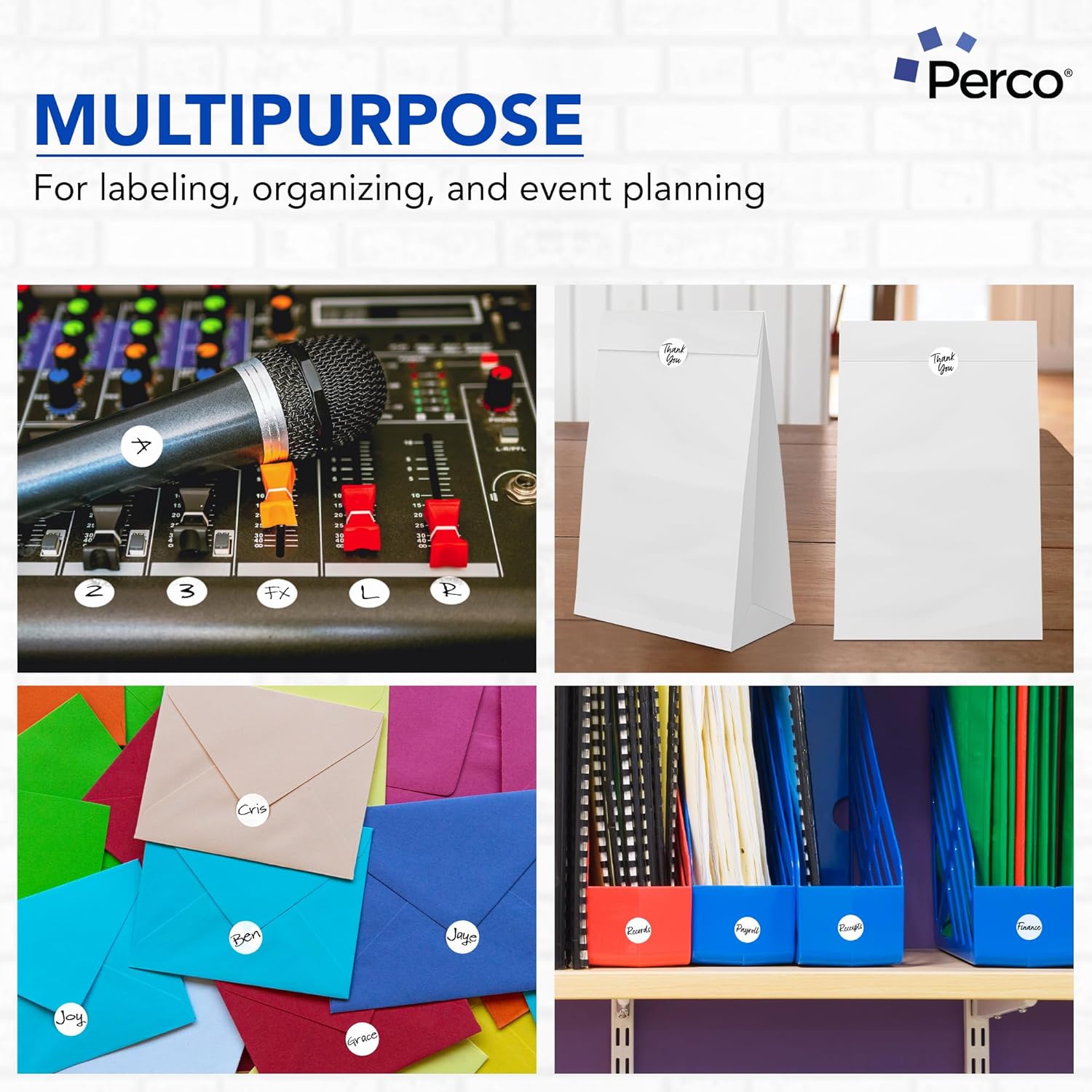 Perco White 1-Inch Round Circle Dot Sticker Labels with Easy Peel Perforation - 1,000 Labels per Roll - Strong Adhesion, Vibrant Colors for Organizing, Crafting & More - Made in USA