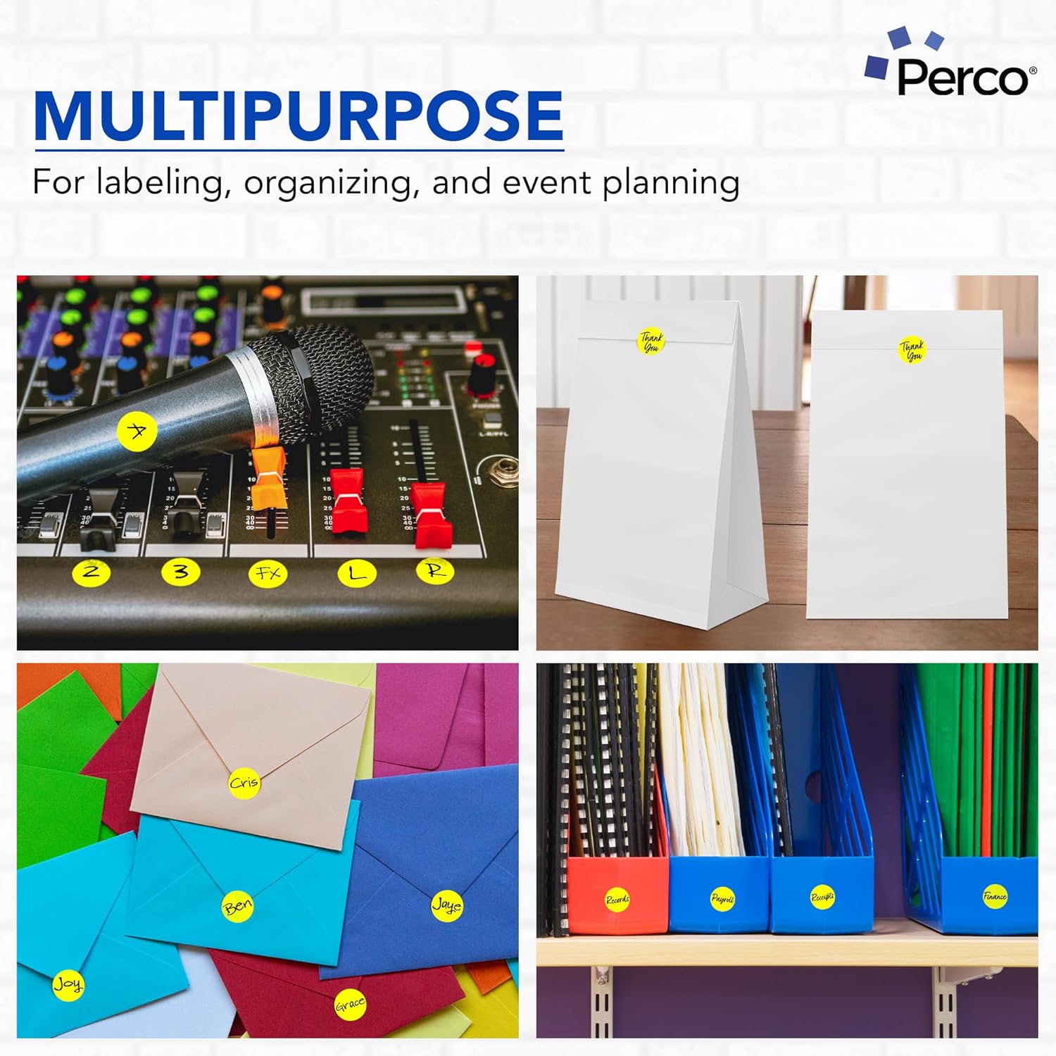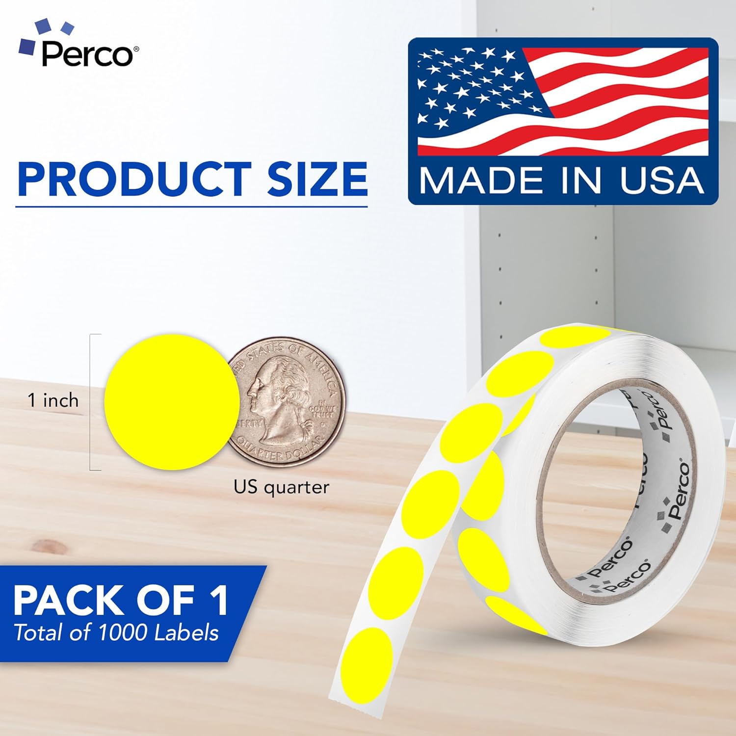 Perco Fluorescent Yellow 1-Inch Round Circle Dot Sticker Labels with Easy Peel Perforation - 1,000 Labels per Roll - Strong Adhesion, Vibrant Colors for Organizing, Crafting & More - Made in USA