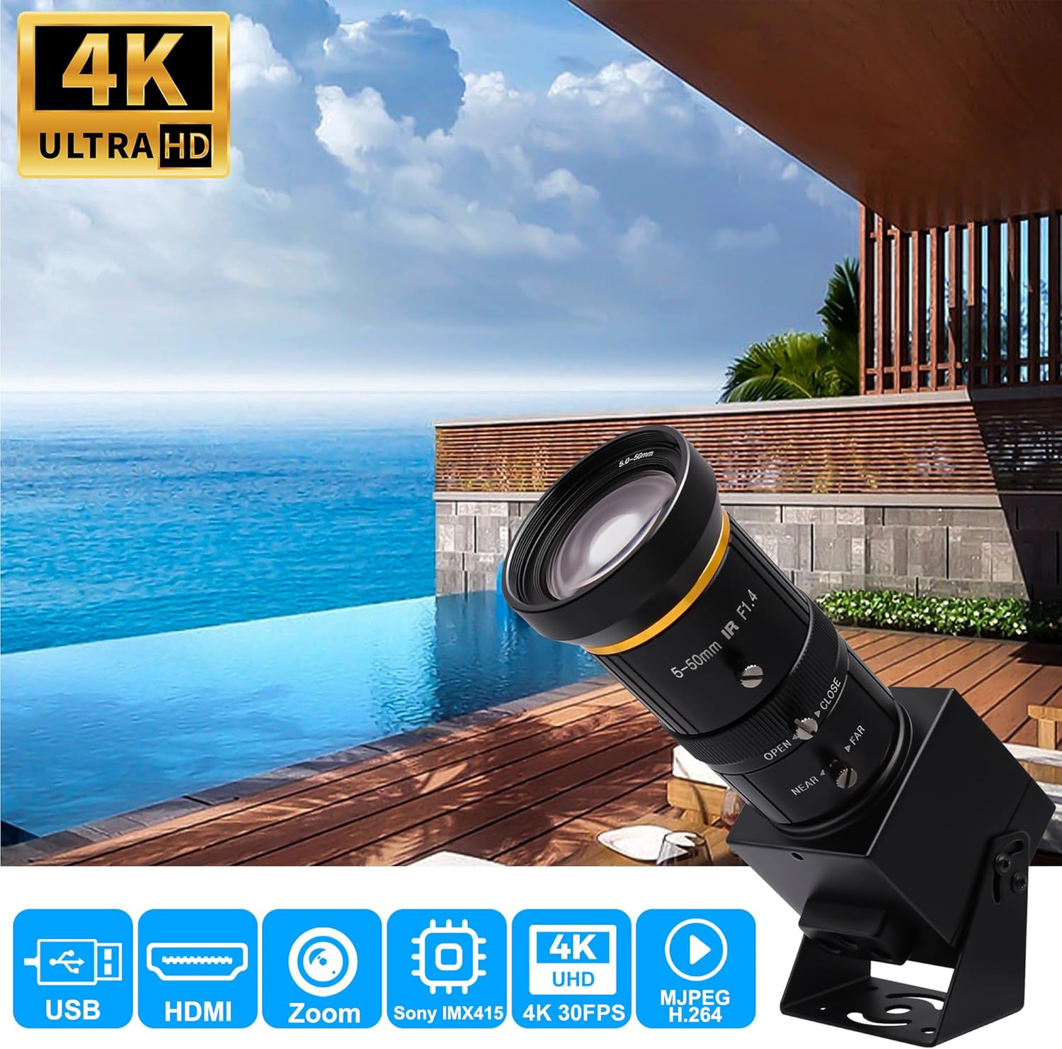 SVPRO HDMI Camera 4K USB Camera HD Streaming Webcam with 5-50mm Telephoto Zoom Manual Lens Industrial Camera CS Mount 10X Optical Zoom Camera for PC Computer,Laptop,Monitor,TV