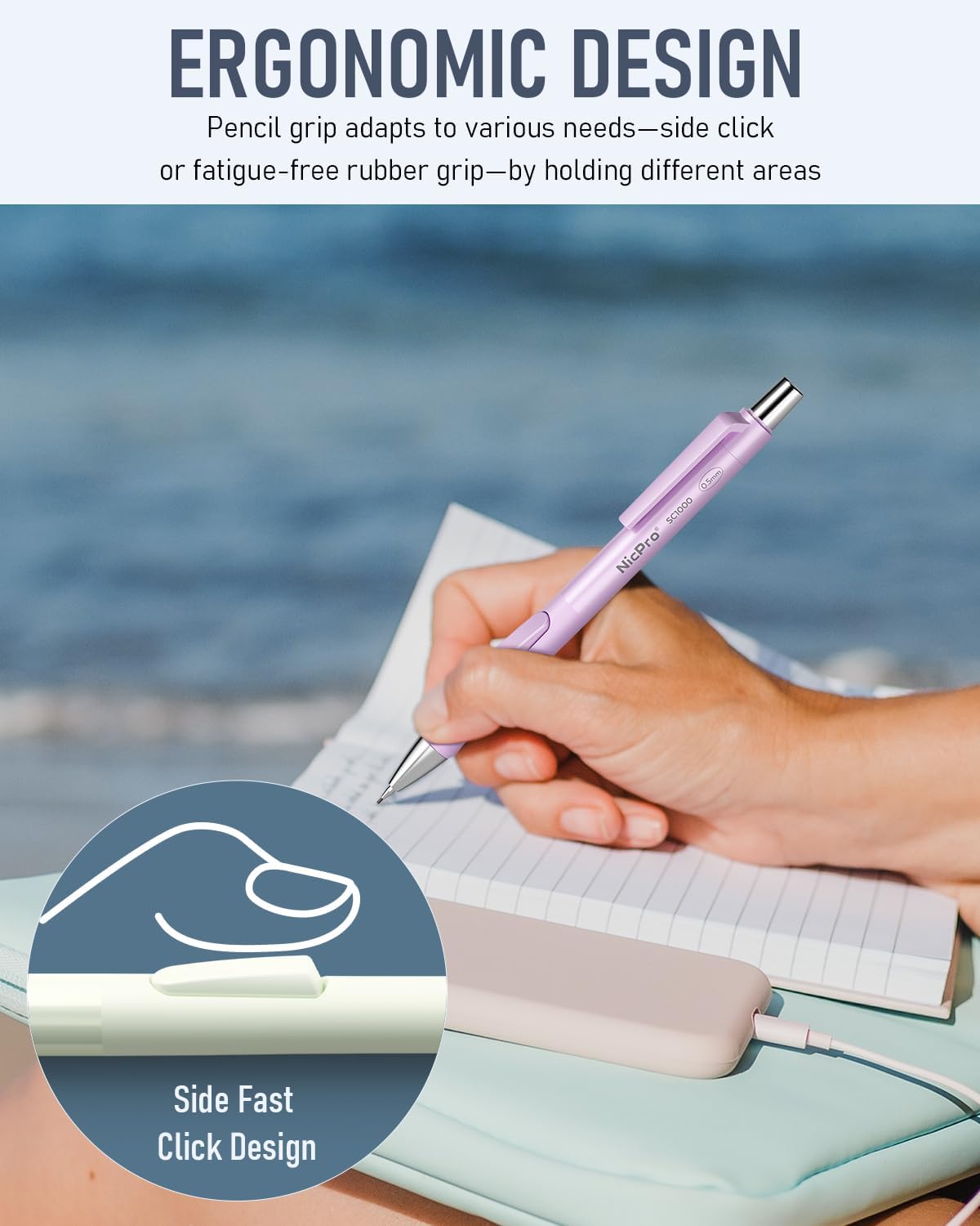 - Fast Click Design: Our mechanical pencil with convenient fast click advance button on side, which lets you easily load lead without changing writing position