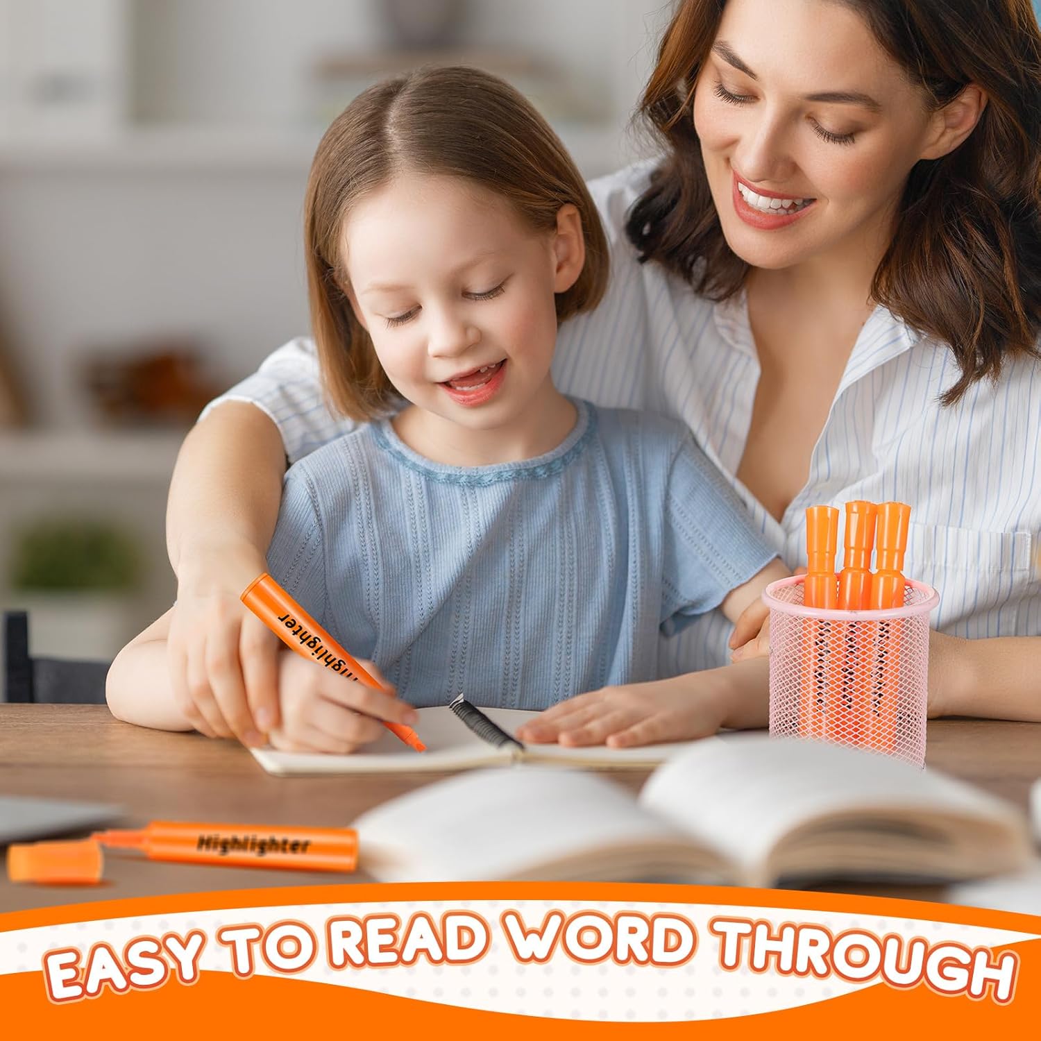 Qilery 72 Pack Highlighters Bulk, Tank Style Chisel Tip Highlighters Markers Quick Drying for Kids and Adult Coloring, Classroom Home Office School Supplies (Orange)