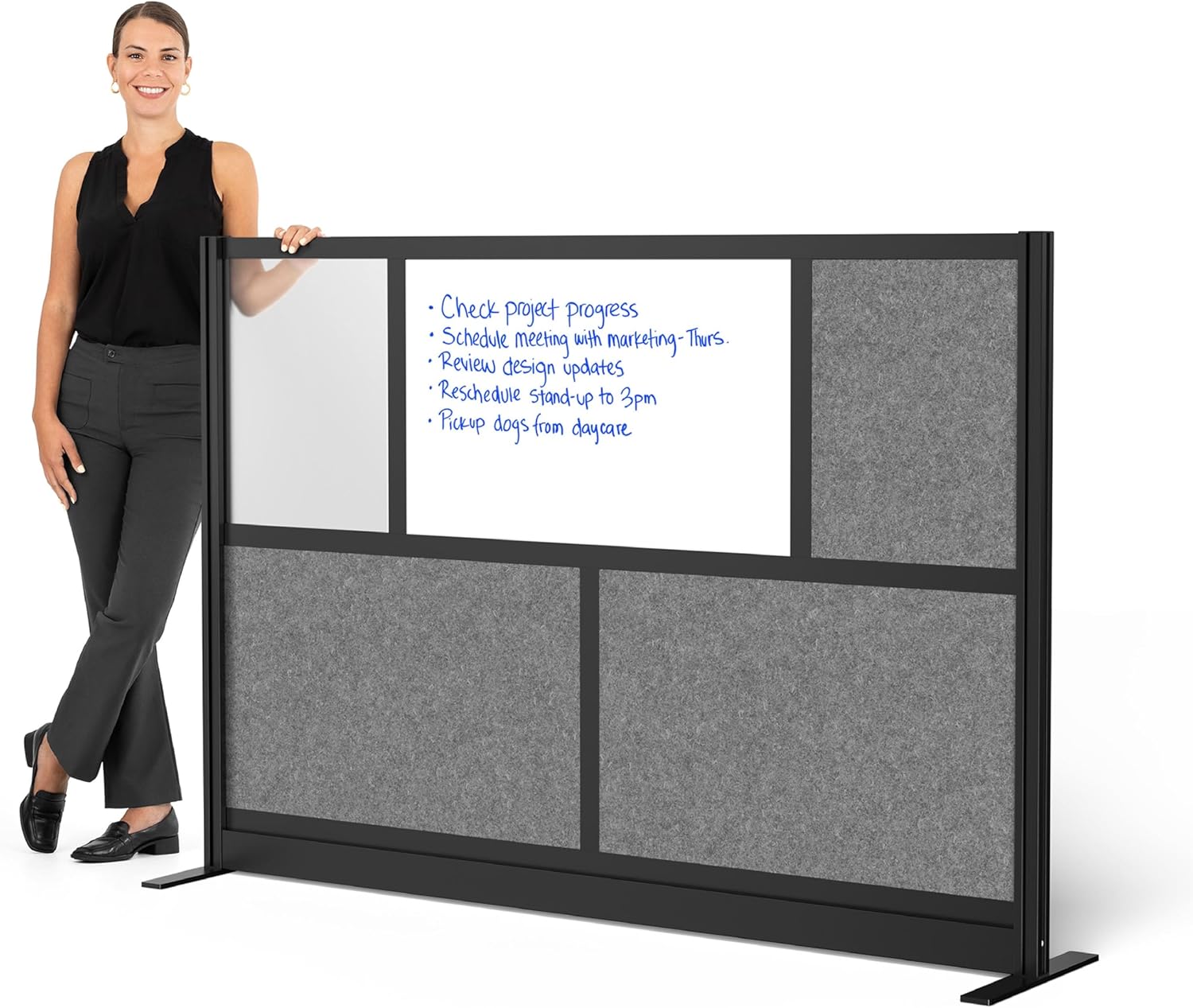 Workflow Modular Wall | Room Divider with Whiteboard, Sound-Dampening, & Frosted Acrylic Panels | Expandable Office Partition for Privacy & Productivity (70" x 48")